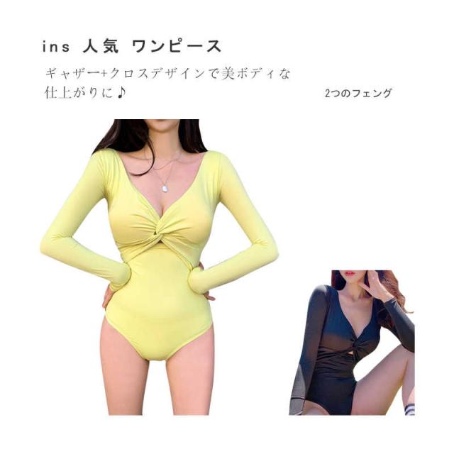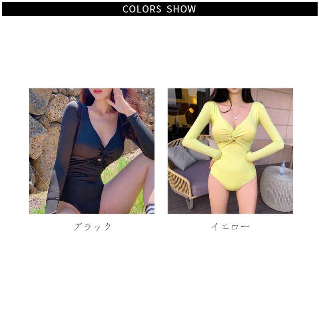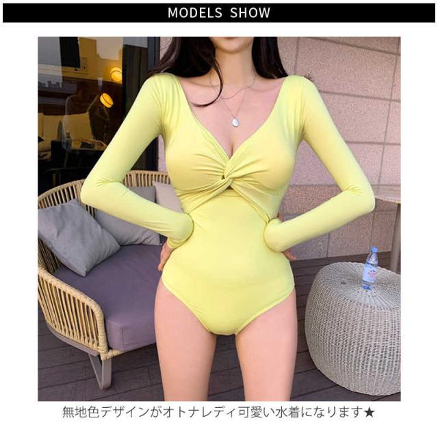 韓国 ins 人気 ワンピース 水着 オールインワン スイムウェア 無地 おしゃれ 黒 韓国スタイル バンドゥ ビキニ カップ付き かわいい ハイウエスト 夏 レトロ きれいめ セクシー UVカット 長袖 ビーチウエア リゾート 海 ビーチ