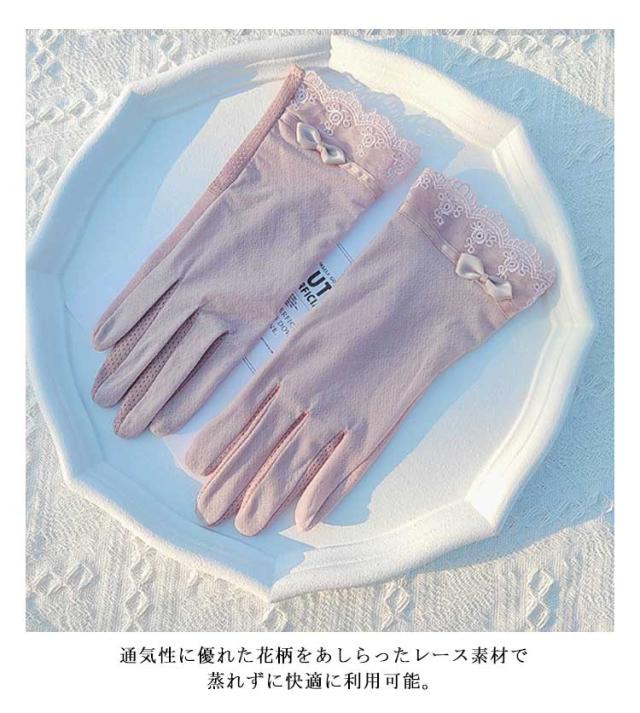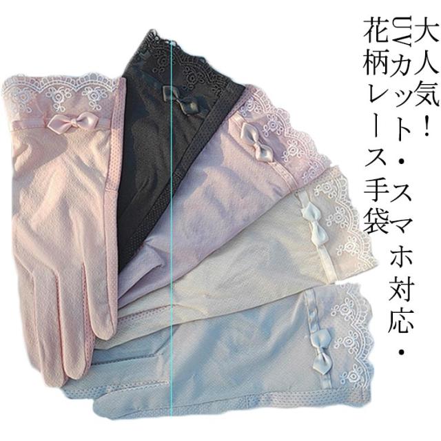 大人気!UVカット 手袋 レディース 花柄レース スマホ対応 滑り留め おしゃれ 夏用 運転 自転車 日焼け防止 紫外線対策 メッシュ素材 薄手 五本指 おしゃれ リボン付き 接触 冷感 クール 速乾 上品 韓国ファション 送料無料
