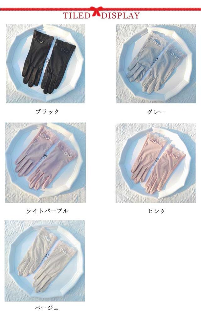 | 大人気!UVカット・スマホ対応・花柄レース手袋 紫外線対策、ひんやり涼しいUVカット手袋。 手のひらの滑り止め加エでグリップ性を強化。 手袋を脱がなくてもスマホやタブレットなどに反応するタッチパネル対応のパッチを装着で便利。 リボン付きデザインでさらにお酒落。 通気性に優れた花柄をあしらったレース素材で蒸れずに快適に利用可能 | |