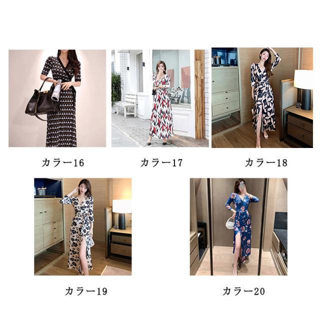 全20柄・送料無料! ワンピース レディース ロング ラップワンピース 秋 春夏 ドレス Vネック ロング丈 前開き マキシ丈 マキシ丈ワンピース ロングワンピース セクシー 全20柄・送料無料! リゾート フェミニン 長袖 エレガント お呼ばれ 通勤 お出かけ 花柄