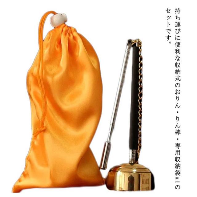 選べる2サイズ おりん 携帯型 仏具 ミニ 伸縮式 りん棒付き 持ち運べる 墓参り リンセット りん棒付き 巡礼 お遍路 持ち運べる 収納ポーチ付き 法事 瞑想 厄除け等