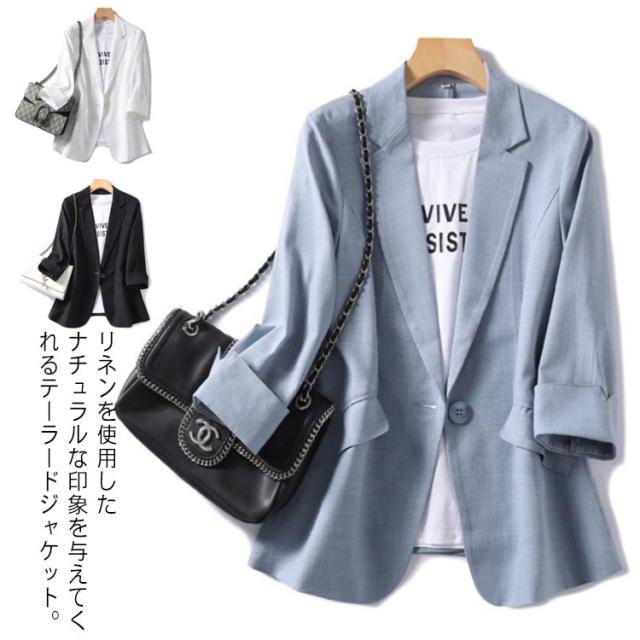 | リネンを使用したナチュラルな印象を与えてくれるテーラードジャケット。 体のラインをスラリと演出し美ボディ効果バツグンな1着です。 コーデしやすい3カラーをご用意いたしました♪ | |