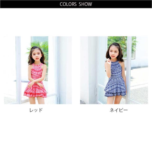 | 「ハイネックでお洋服みたいなワンピース水着」 プリント柄がとってもおしゃれ! カットアウト&リボンのバックシャンで今どきお姉さんっぽスタイル ショートパンツ付き2点セットだからママも安心HAPPY♪ 様々なシーンで、思い切り水遊びを楽しめます♪ 海 川遊び プール 保育園用 お家プール | |