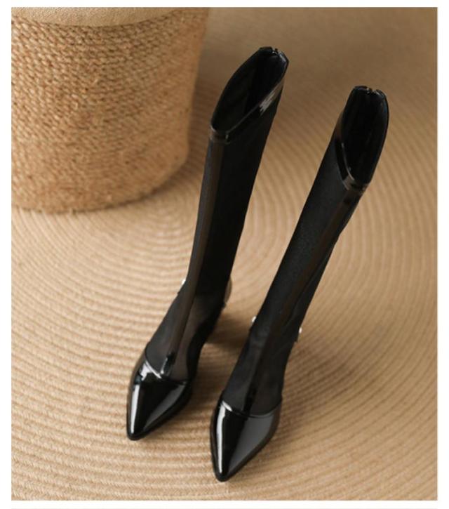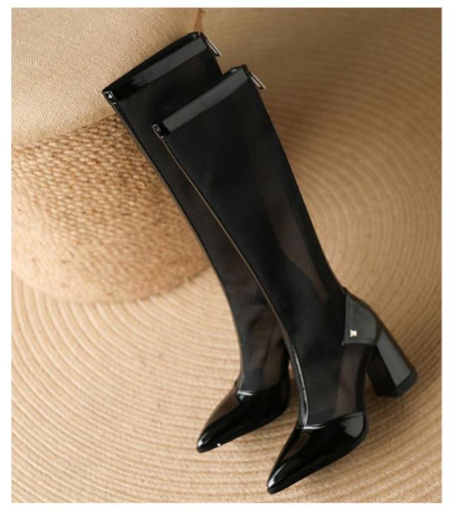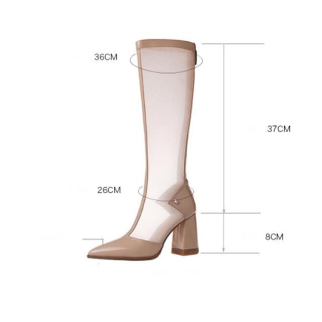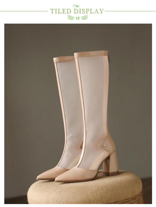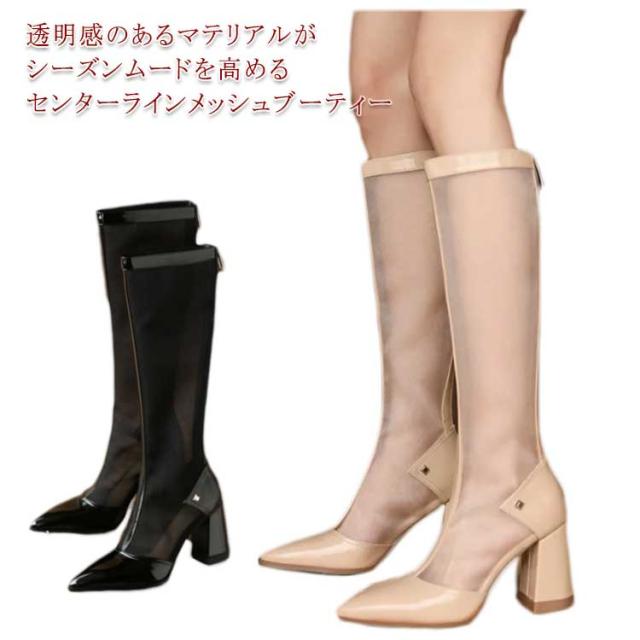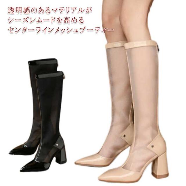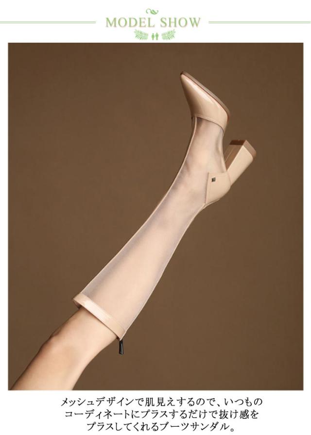 ロングブーツ 疲れない メッシュ 夏 ブーツサンダル レディース ハイヒール 太いヒール 歩きやすい 大人 太いヒール 靴 通気性 かわいい 韓国風 美脚 夏用ブーツ 春 春夏 秋 大きいサイズ 痛くない