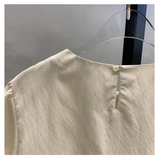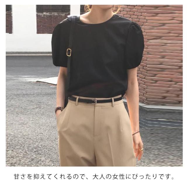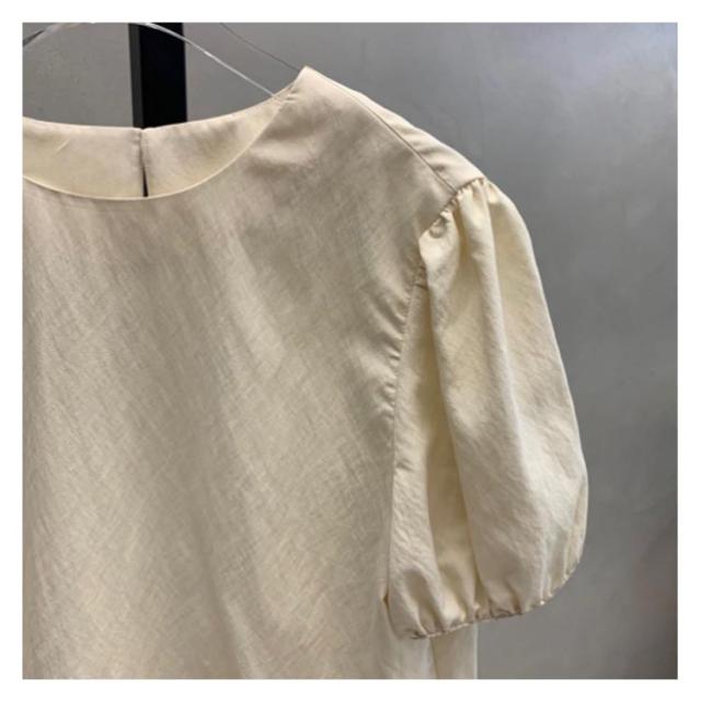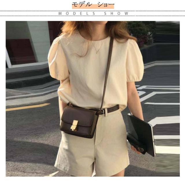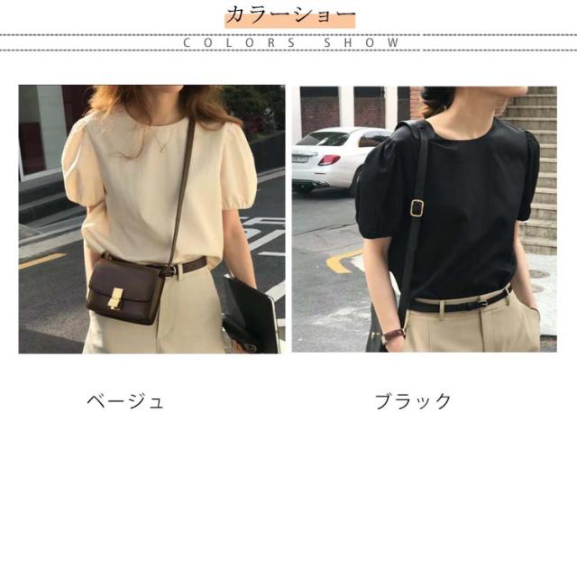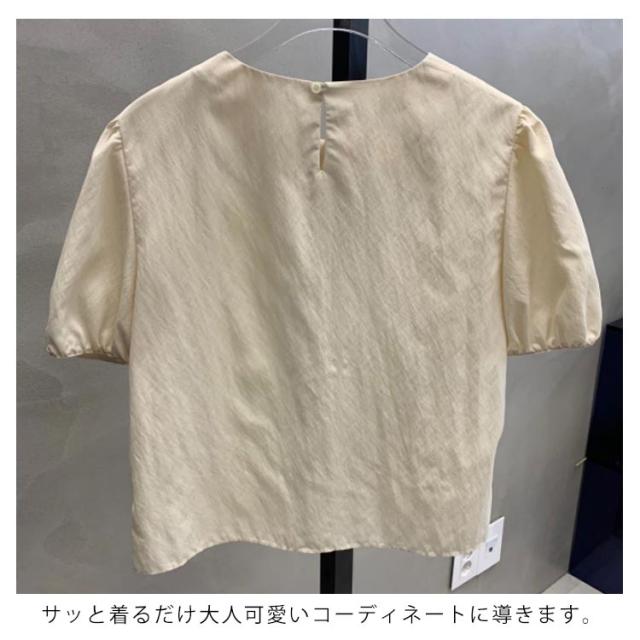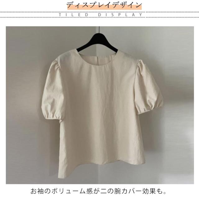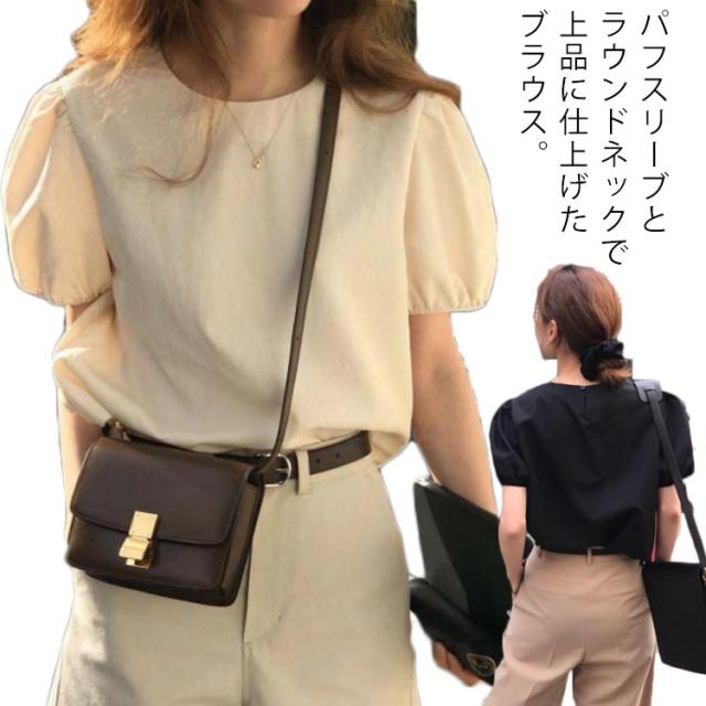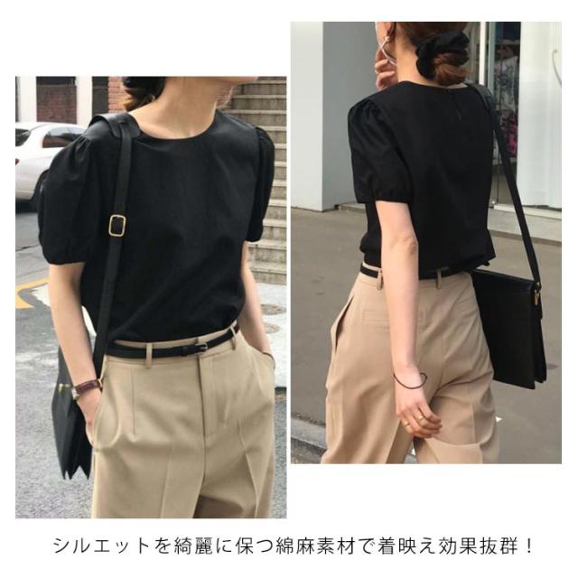ブラウス パフスリーブ 綿麻 夏 半袖 レディース リネン コットン ボリューム袖 パフ袖 ぽわん袖 トップス ゆったり 無地 カジュアル ラウンドネック プルオーバー バルーンスリーブ おしゃれ 仕事 通勤 送料無料