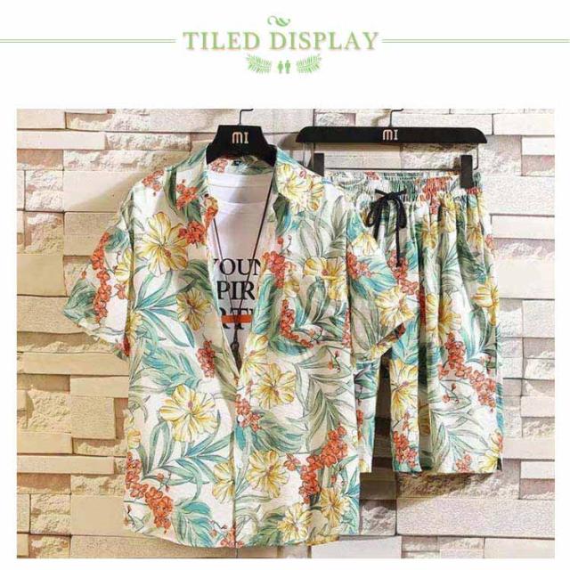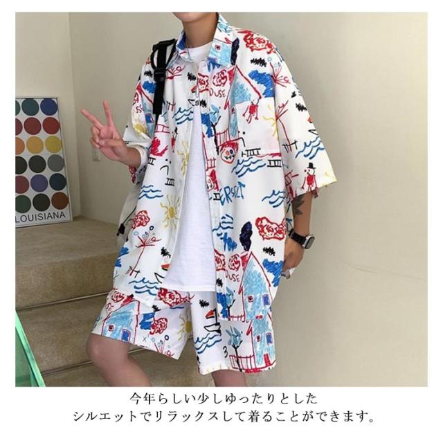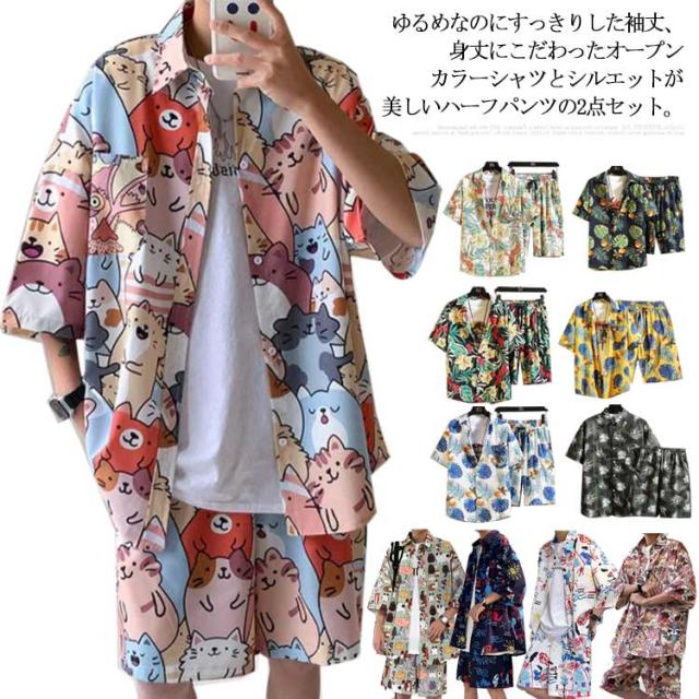 【送料無料】アロハシャツ セットアップ 半袖 ハーフパンツ メンズ 開襟シャツ 夏 ボタニカル柄 ゆったり ハワイアン 総柄 ショートパンツ リゾート 海辺 カジュアル 父の日 プレゼント L 2L 3L 4L 大きいサイズ