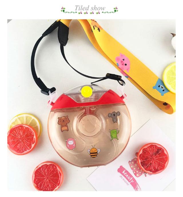 | かわいいドーナツデザイン!子供用のウォーターボトルです。 片手で開くことができるボトルキャップ、軽くて耐久性が高いプラスチック素材を使用なので、長くお使いいただけます。 分解ができるのでお手入れも簡単、いつも清潔な状態でご使用できます。 持ち運びやすいショルダーベルト付きの便利アイテムです。 デイリー、通園はもちろん、アウトドアシーンにもおすすめです。 | |