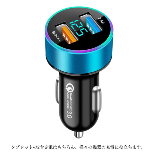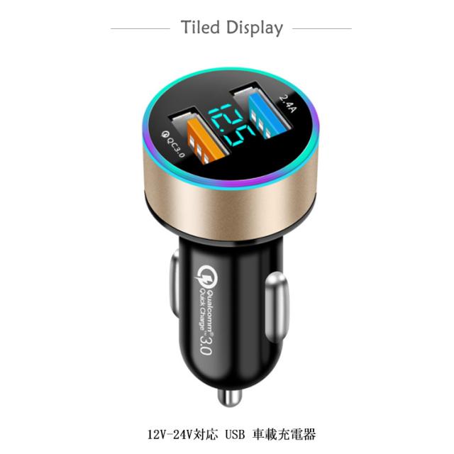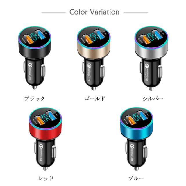 | サイズについての説明 | ■製品仕様 ●入力電圧:12V-24V ●出力QC3.0(3.6V-6.5V)3A,(6.5V-9V)2A,(9V-12V)1.5A×2ポート ●サイズ:6.3*3.2cm ●本体重量:26g ●カラー:ブラック、ゴールド、シルバー、レッド、ブルー |