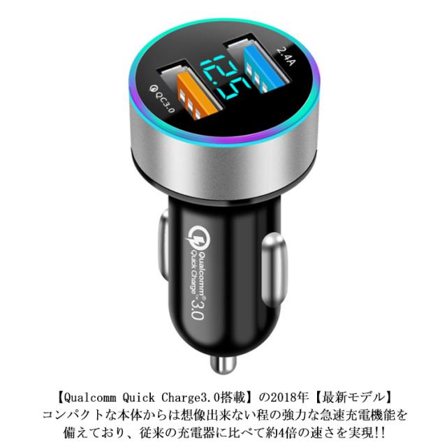 | 【LUFT カーチャージャー】 12V-24V対応 USB 車載充電器 【Qualcomm Quick Charge3.0搭載】の2018年【最新モデル】コンパクトな本体からは想像出来ない程の強力な急速充電機能を備えており、従来の充電器に比べて約4倍の速さを実現!! Quick Charge2.0と比較して、充電効率が最大38%向上しました。 タブレットの2台充電はもちろん、様々の機器の充電に役立ちます。 | |