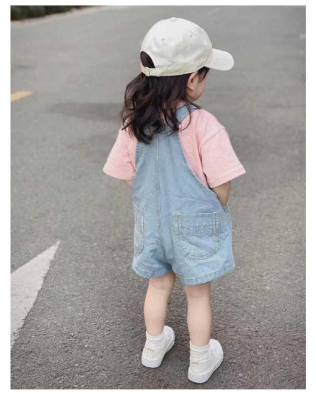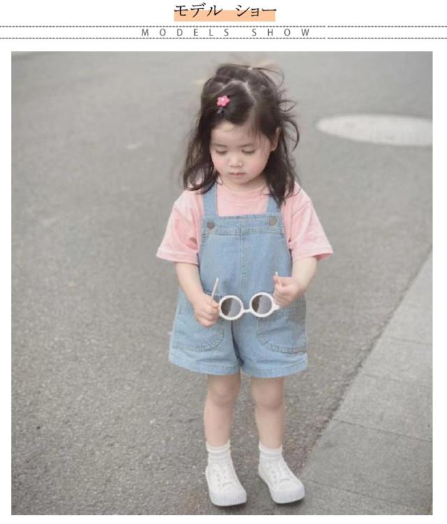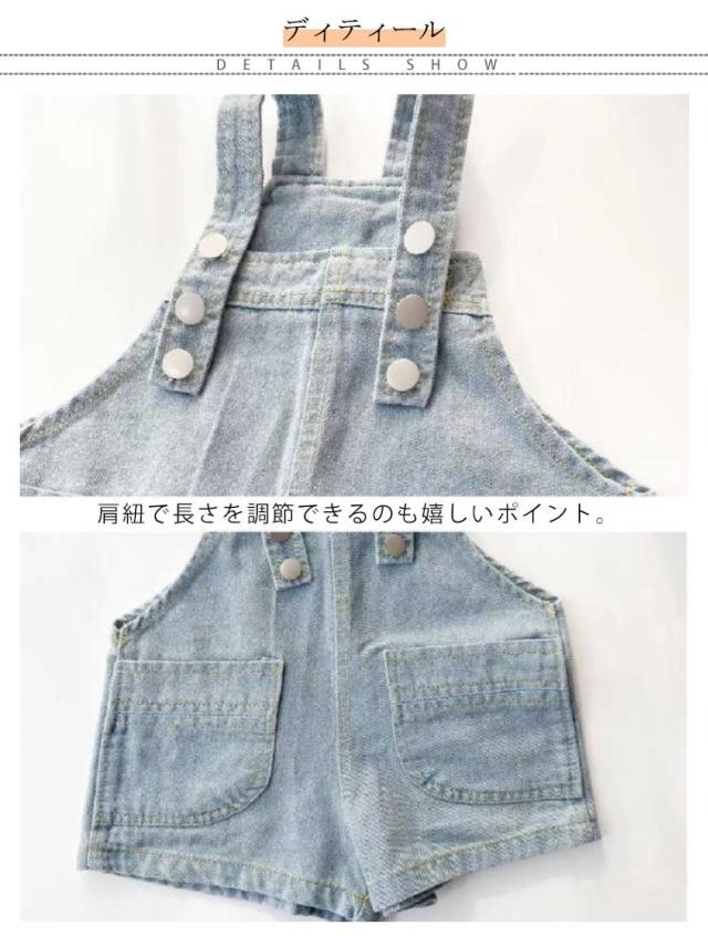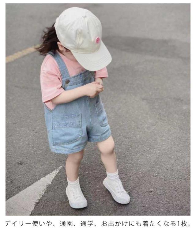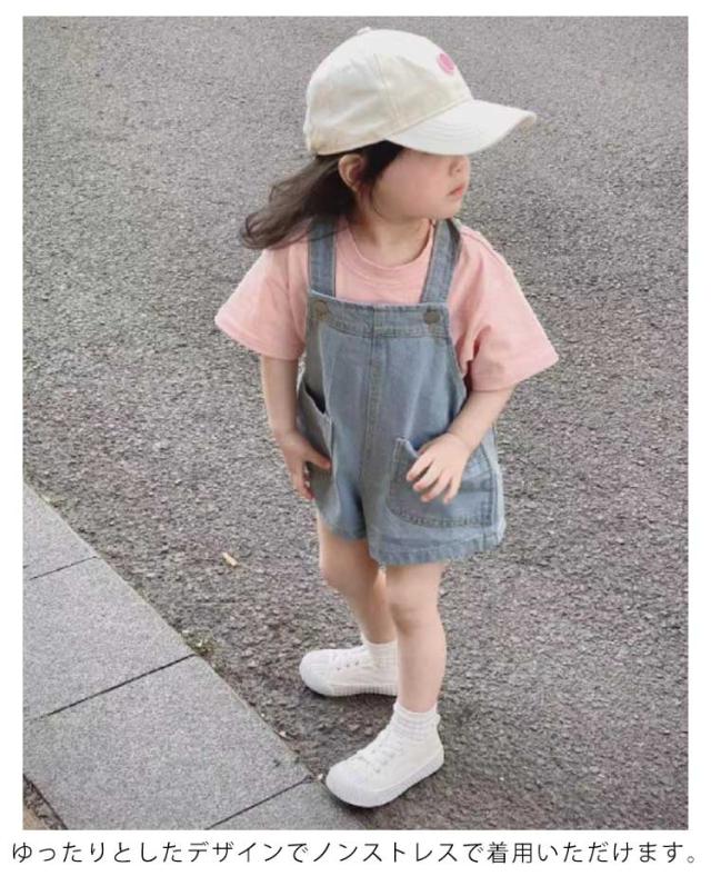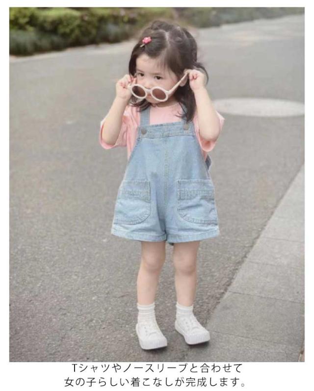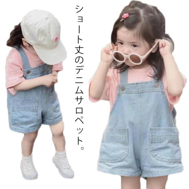 デニムサロペット キッズ 女の子 ショート丈 オーバーオール オールインワン 子供服 子ども服 ベビー 子ども用 ジーンズ サロペット ショートパンツ ワイドパンツ ボトムス 無地 シンプル ゆったり カジュアル 春 夏 送料無料