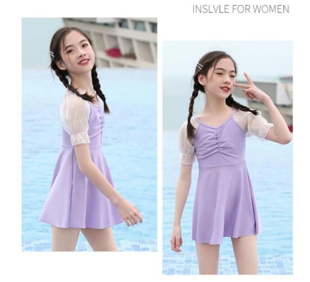 キッズ 水着 女の子 夏 ワンピース オールインワン レース チュール袖 ギャザー 子供用 小学生 ジュニア 女児 女子 子ども 水遊び プール 海 川 アウトドア お洒落 可愛い 体型カバー スイムウェア 幼稚園 80-140cm 送料無料