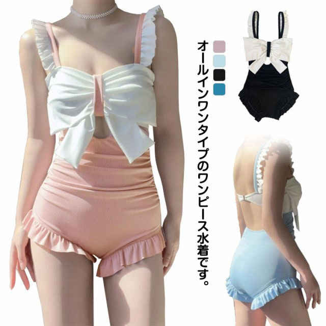 水着 レディース 体型カバー オールインワン フリル 大人可愛い シンプル S M L XL ワンピース 水泳 ビーチ みずぎ 温泉用 海水浴 練習用 着痩せ パッド付 スイムウェア プール 大きいサイズ 20代 30代 ビキニ 送料無料