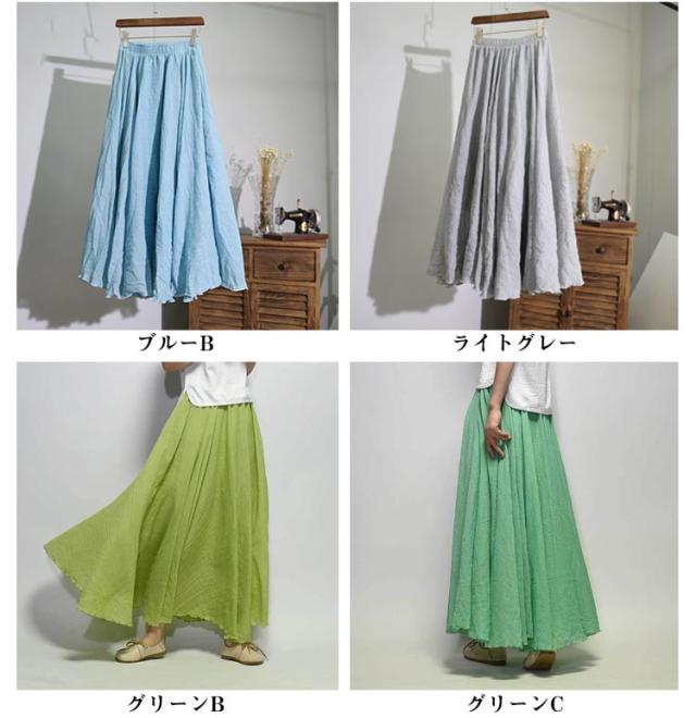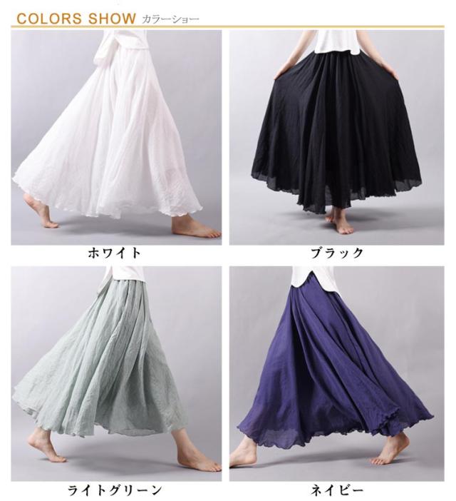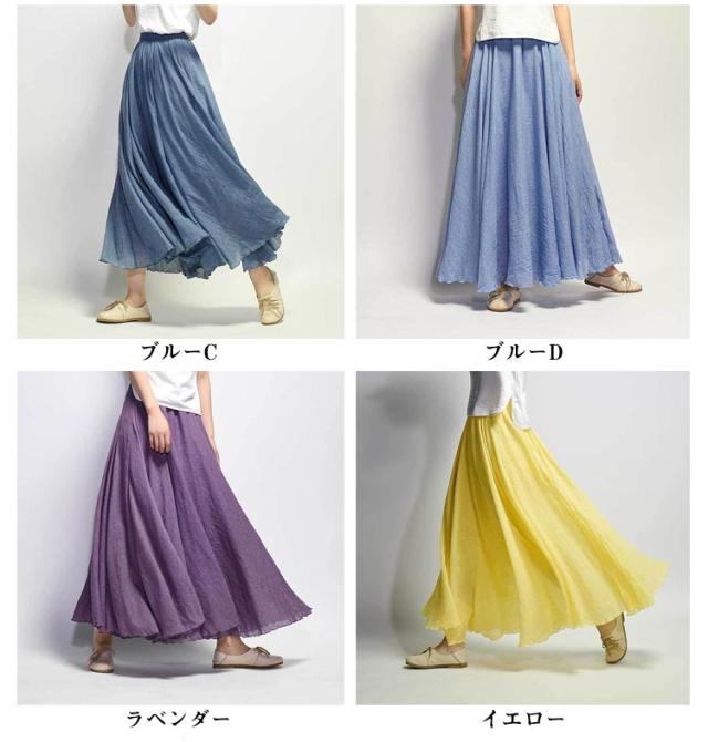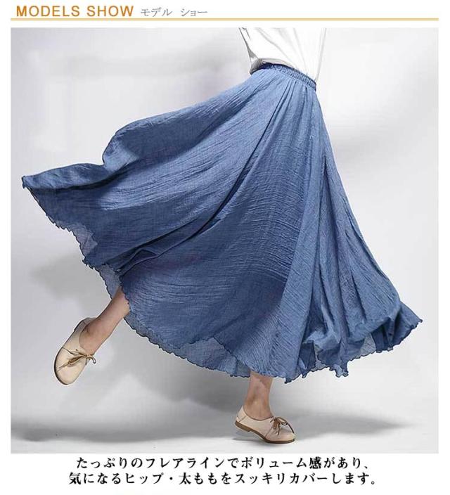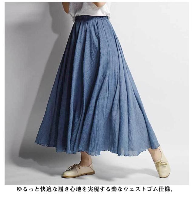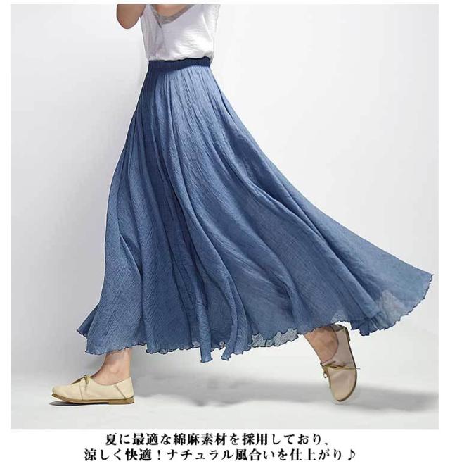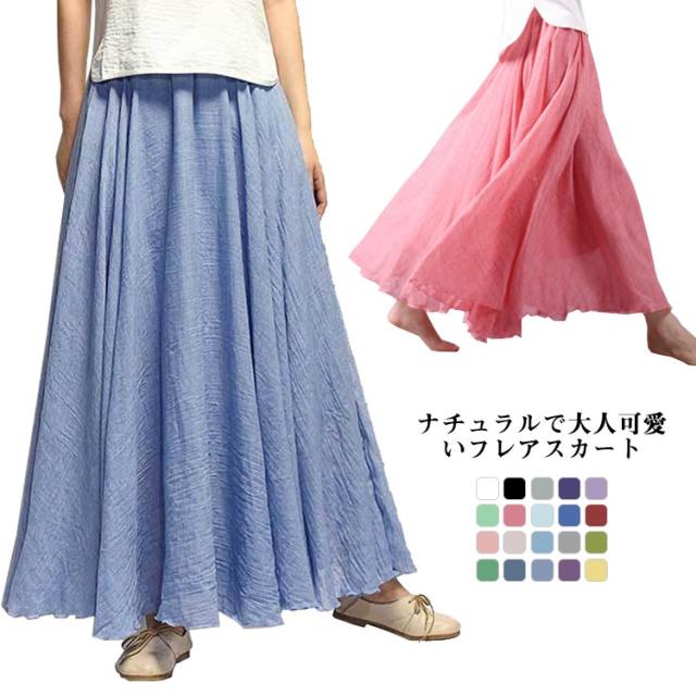 【送料無料】スカート ロングスカート 春夏 マキシスカート ロング丈 フレアスカート レデイース 綿麻 フレア 無地 快適 リネン風スカート マキシ リゾート ボトムス 旅行 体型カバー ふんわり ゆったり 誕生日 母の日 敬老の日 ギフト 75cm 85cm 95cm