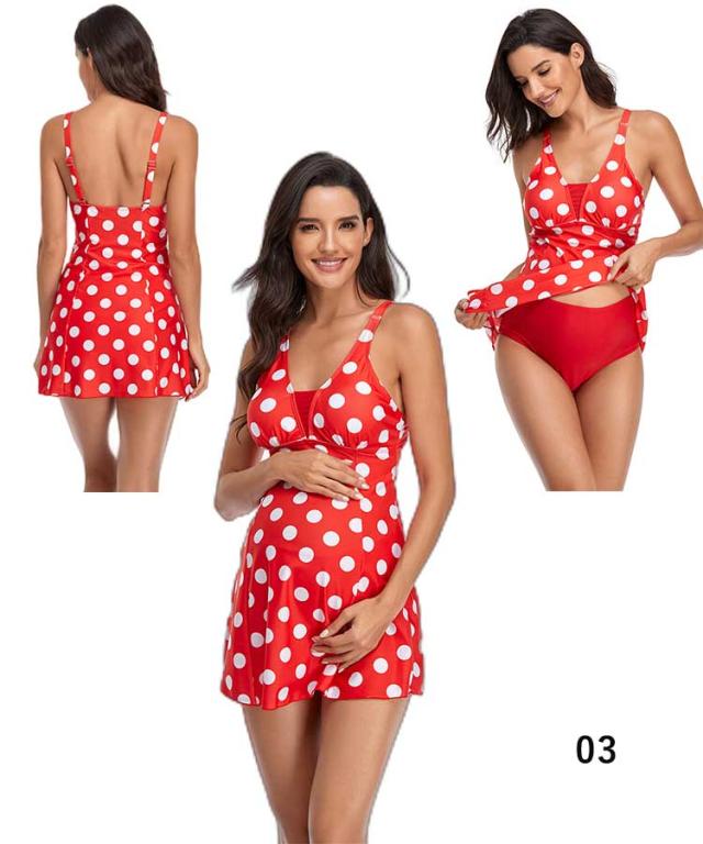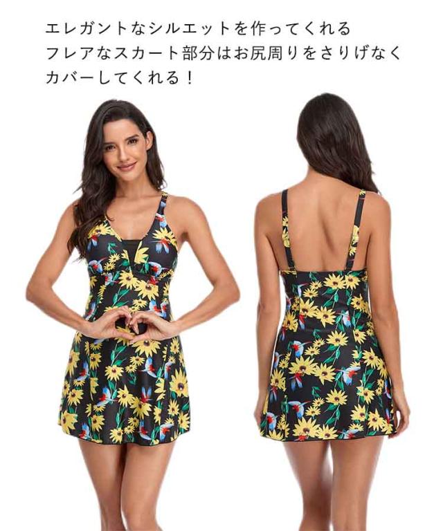 | マタニティとは思えない可愛い水着登場! 胸元が広めに開いているので顏周りもスッキリ魅せてくれます。 エレガントなシルエットを作ってくれるフレアなスカート部分は、お尻周りをさりげなくカバーしてくれる! ワンピースの絶妙な丈や、ハイウェスト切替などボディラインを美しく、スタイル良く見せてくれます。 露出を抑えると野暮ったくなりがちなママ水着ですが、ワンピ型なので女性らしくキュート♪ | |