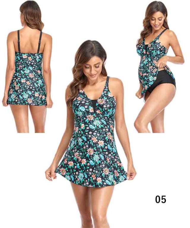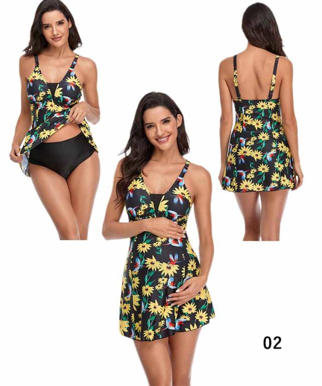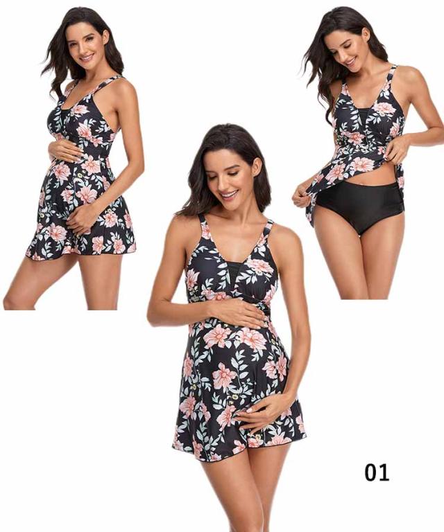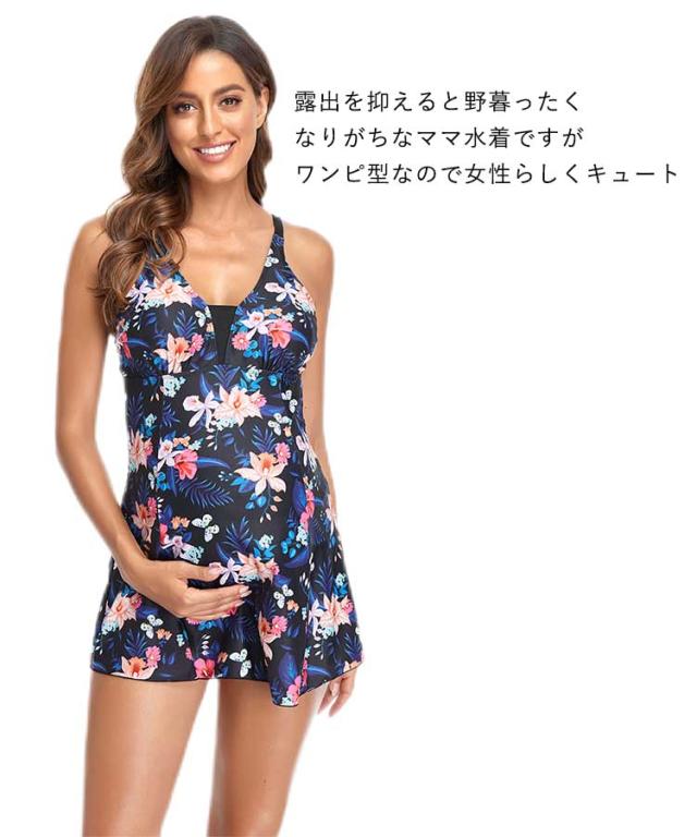 マタニティ 水着 セパレートタイプ 妊婦水着 マリン パッド付 ワイヤー無し 露出控えめ フレアワンピース ママ 水着 スイミング 水泳 女性 妊婦用 体型カバー 花柄 全6色 夏 夏休み 海