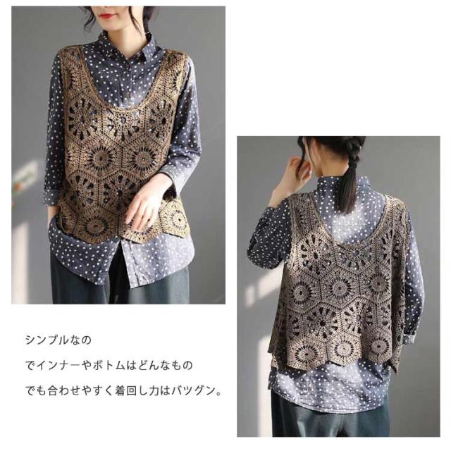 ニットベスト レディース ノースリーブ ベスト サマーニット トップス プルーオーバー 透かし彫り 無地 ゆったり きれいめ 春夏 お洒落 レイヤード風