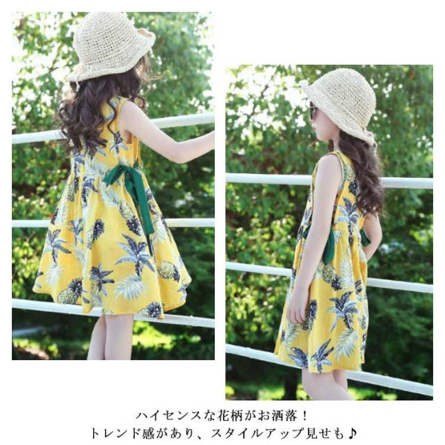 ワンピース 花柄 ガールズ 子供服 ドレス ノースリーブ 女の子 チュニック キッズ 夏服 可愛い 旅行 通気性 お洒落 女児 普段着
