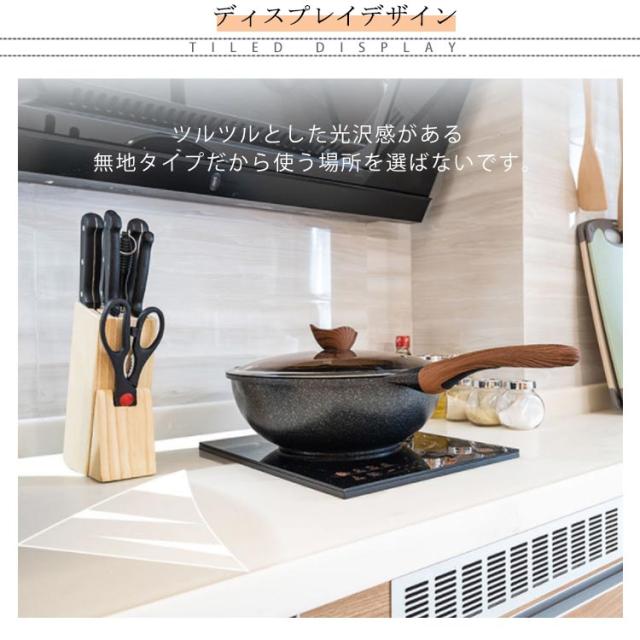 | 防水・防汚・耐熱・抗菌!キッチンシート 水や油に強いので、飛び散ってしまった汚れも、濡れたタオルで拭くだけでキレイになります。 抗菌加工が施されているので、いつでもキッチンを清潔にキープ! ツルツルとした光沢感がある無地タイプだから使う場所を選ばないです。 好きなサイズに合わせて、簡単にカットできます! 台所だけではなく、洗面台や戸棚、トイレまわり、浴室など幅広く使えるので便利です。 | |