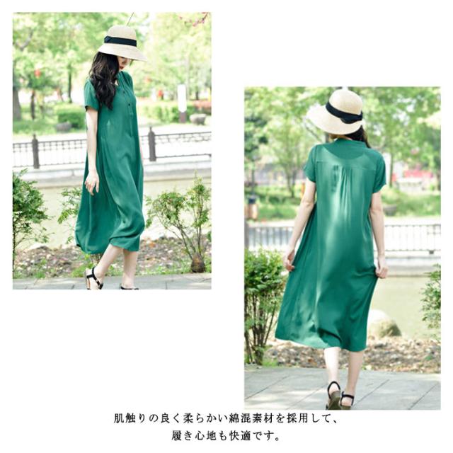 マキシ丈ワンピース ロングワンピース ワンピース 半袖 無地 マキシワンピ UV 夏 ルームウェア きれいめ ロング aライン マキシ丈 ワンピ マタニティ クルーネック リラックス 大人 ゆったり 同窓会 上品 お呼ばれ 送料無料