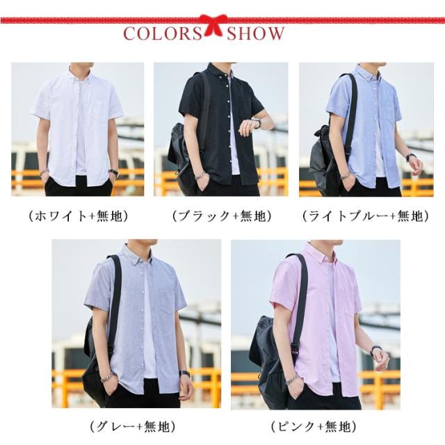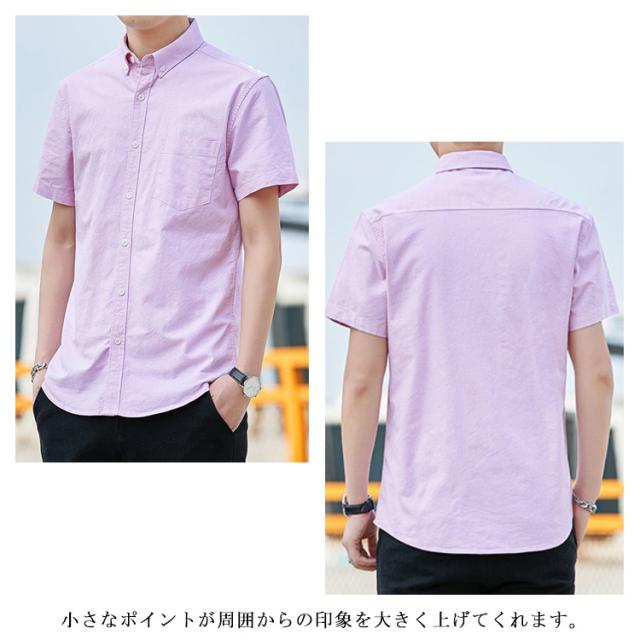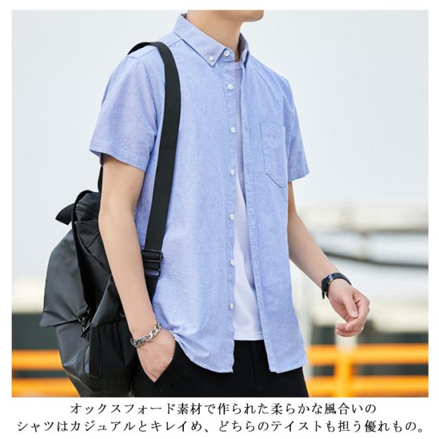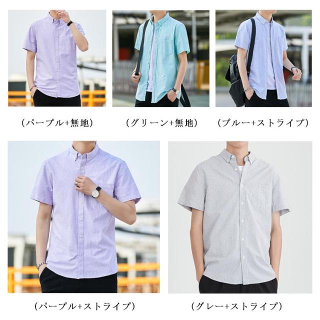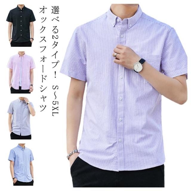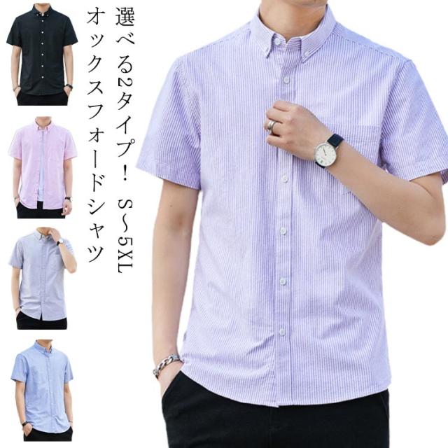 オックスフォードシャツ 半袖 メンズ ファッション トップス カジュアルシャツ 無地 ストライプ 2タイプ 春 夏 秋 春服 夏服 秋服 送料無料