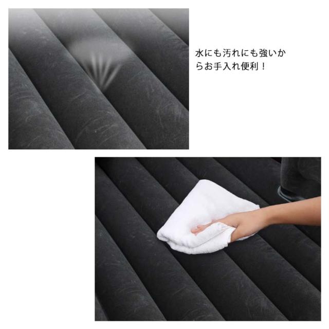 | 車中泊におすすめな車内専用のエアーベッドです。 高いクッション性があり、車内でも快適な寝心地を実現します。 表面には起毛仕様でベロア生地のような快適な肌触りです。 水にも汚れにも強いからお手入れ便利! 2個のエアー枕がついていて快適に寝ることができます。 運転席(助手席)と後部座席の間に置いて使える隙間用クッションが付属しています。 すき間にエアベットが沈むことなく、快適に過ごせます。 畳んで持ち運びできる収納袋も付属しています。 車での長距離ドライブに最適なカー用品です。 軽自動車、セダン、SUVなど幅広い車種に適合します。 アウトドア、レジャー、ピクニックなどでも使用できます。 愛犬やペットを後部座席に乗せるのもぴったり。 | |