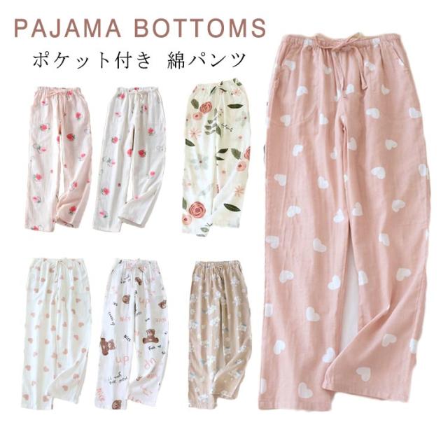 ハート クマ 花柄 猫 長ズボン パジャマ パンツ ポケット付き ルームウェア レディース ルームパンツ 春 夏 綿 パンツ 綿 ロングパンツ ナイトウェア コットン パンツ ズボン 長パンツ 薄手 快適 入院 産後 ゆったり 部屋着 レディースルームウェア 送料無料