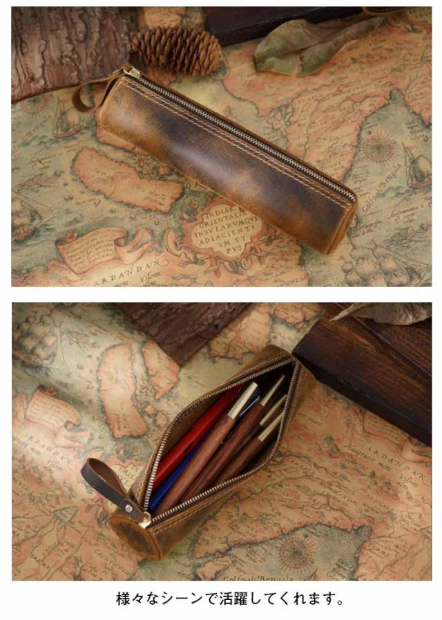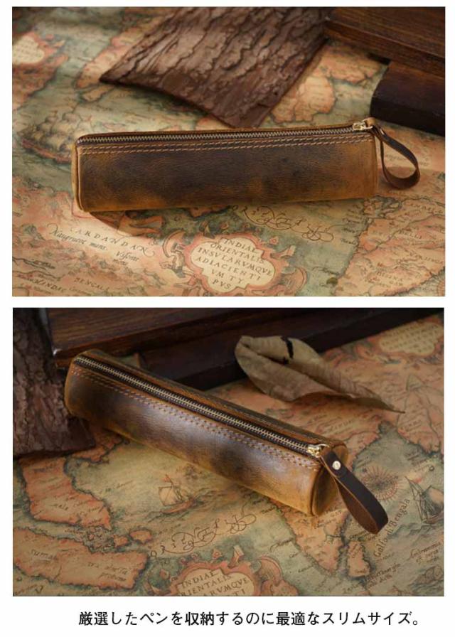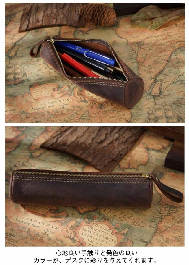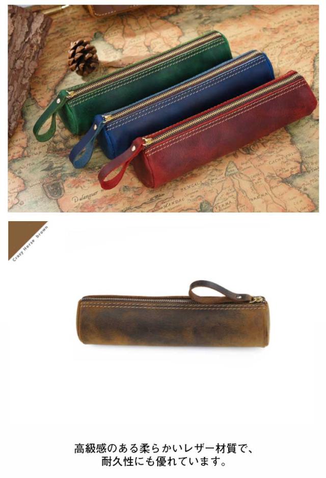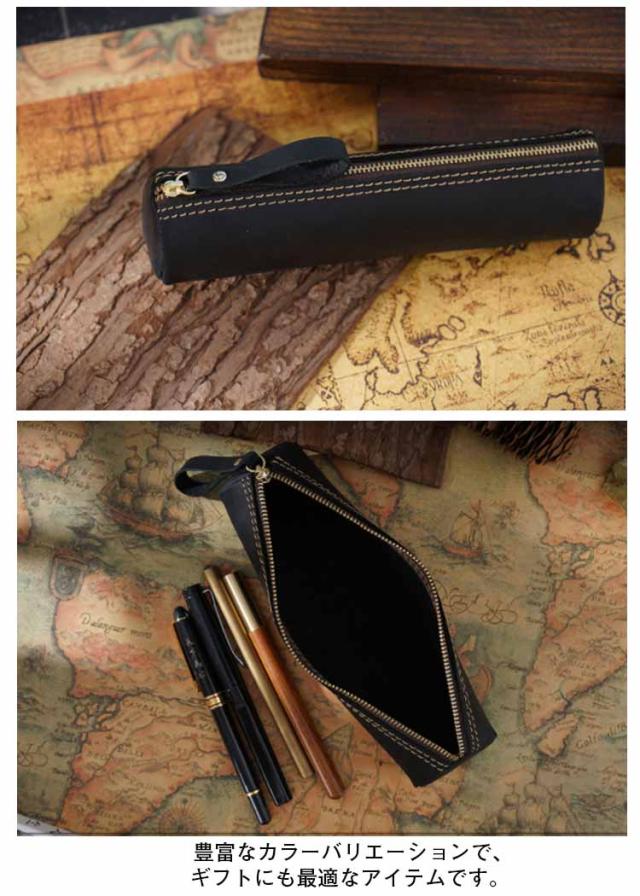 ペンケース 筆箱 メンズ レディース おしゃれ シンプル オフィス 送料無料 大学 高校生 中学生 本革 ファスナー チャック 小さめ スリム 丸型 ふで箱 ふでばこ ペン ポーチ 文房具 文具 収納 革小物 万年筆ケース ビジネス 父の日 父の日ギフト プレゼント 1本 2本