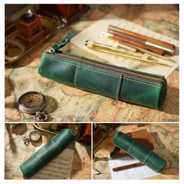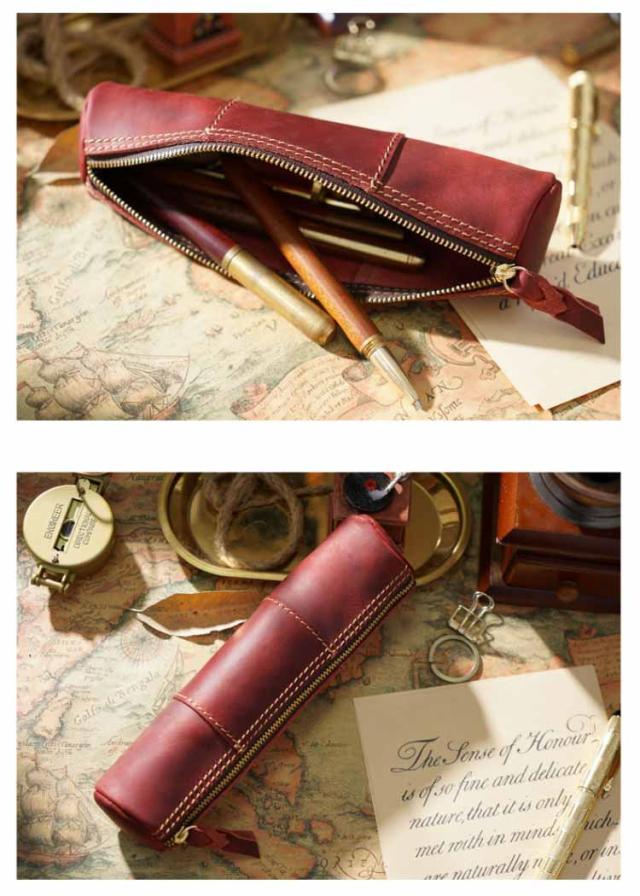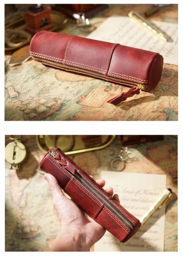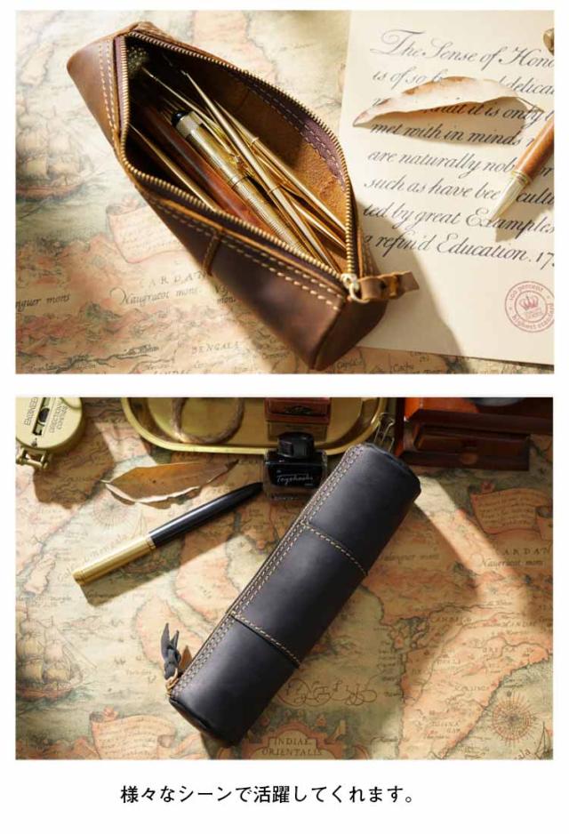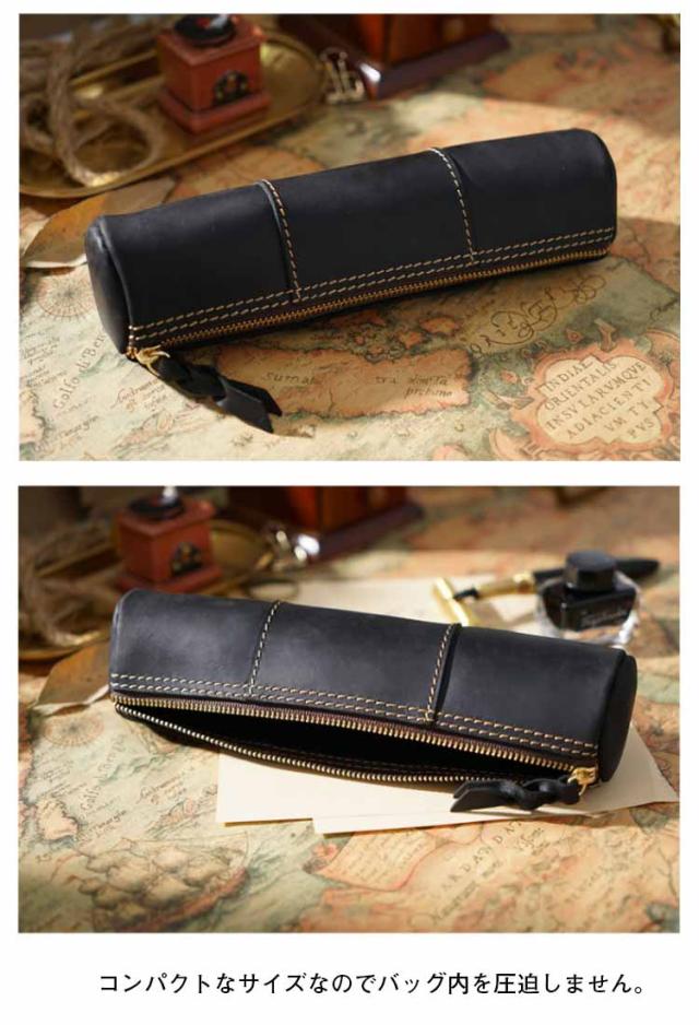 ペンケース 筆箱 メンズ レディース おしゃれ シンプル オフィス 大学 高校生 中学生 本革 ファスナー チャック 小さめ スリム 丸型 ふで箱 ふでばこ ペン ポーチ 文房具 文具 送料無料 収納 革小物 万年筆ケース ビジネス 父の日 父の日ギフト プレゼント 20本入れる