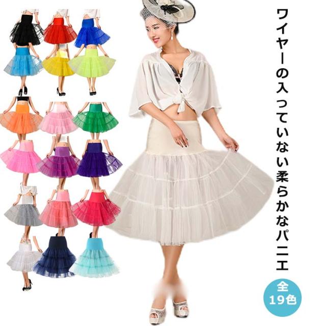 パニエ ワイヤー無し 裏地付き ドレス用 ワイヤレス 骨無し チュール チュールスカート ウエディング ブライダル コスプレ ニ次会 パーティー コンサート 全19色