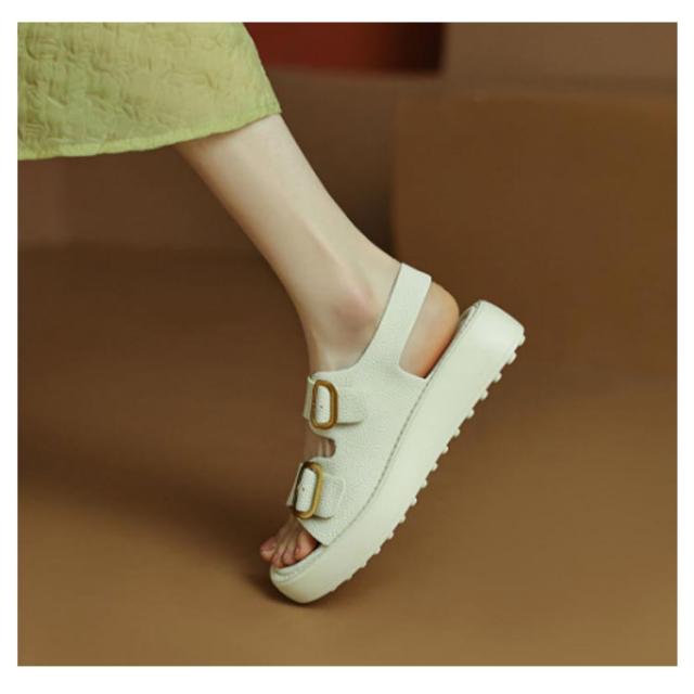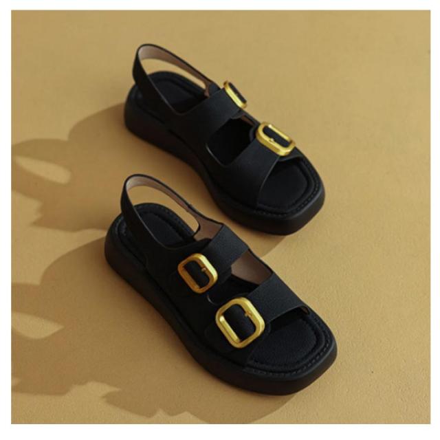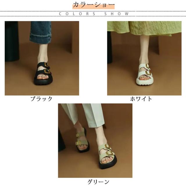 | 普段使いや遊びに行って絶対に疲れたくない足に! 甲とインソール部分には超ソフトな合皮を使用。触り心地がよい生地感。 調節可能なダブルベルトで、足全体を包み込むようなフィット感をもたらします。 軽量で高いクッション性の優れたソールが、一日中履いていても疲れにくい履き心地を実現。 約3.5cmのヒールで美脚効果も期待できます! 大人の夏コーデに合わせやすく、足元を上品に彩ってくれる。 | |