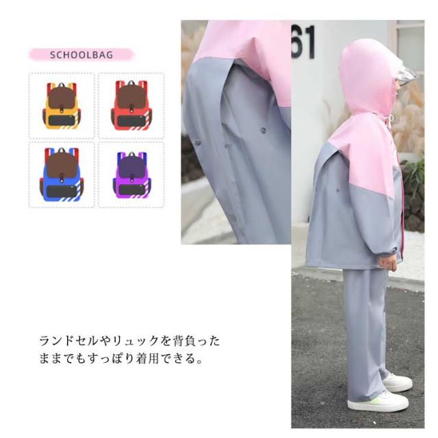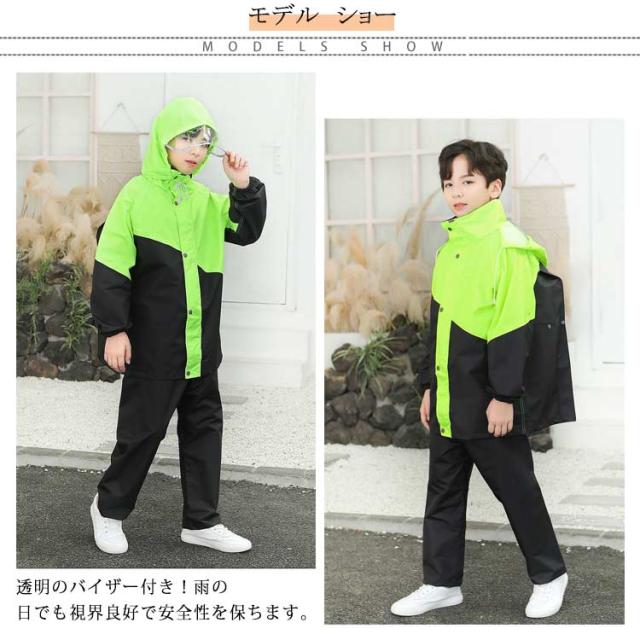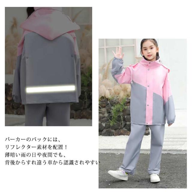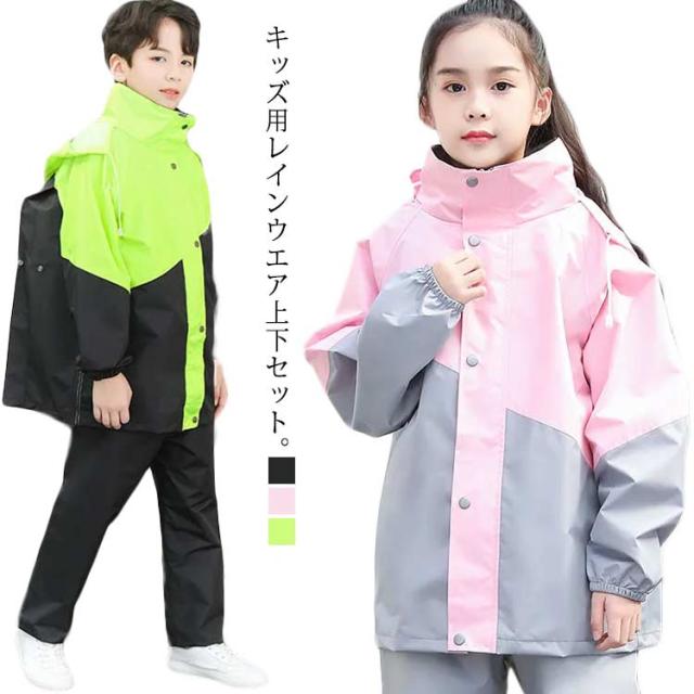 レインコート 上下セット キッズ用 レインスーツ 子供用 レインウエア セパレート 女の子 男の子 撥水 防水 子ども レインスーツ カッパ 合羽 雨具 ジュニア 男女兼用 ランドセル対応 リュック対応 反射テープ 台風 梅雨 自転車 アウトドア 遠足 通園 通学 送料無料