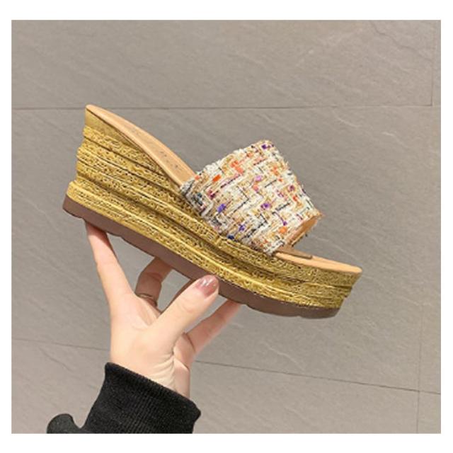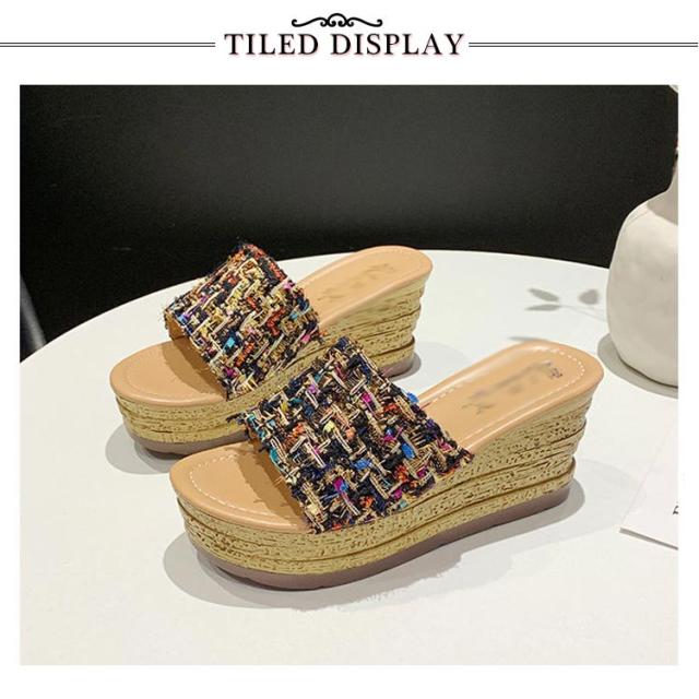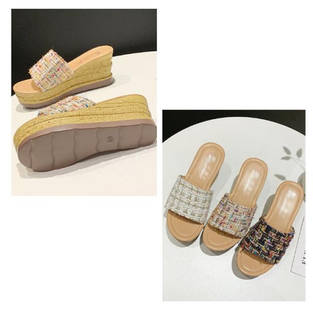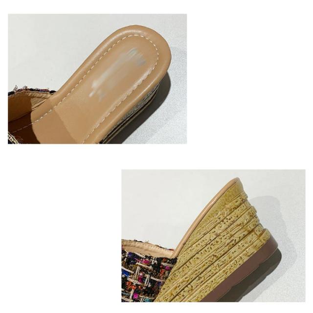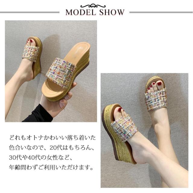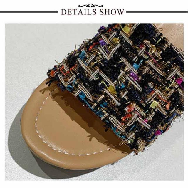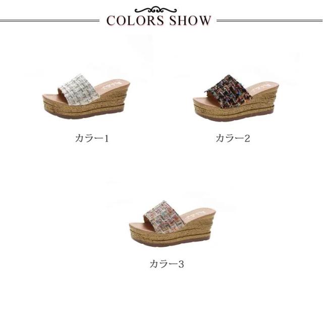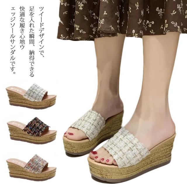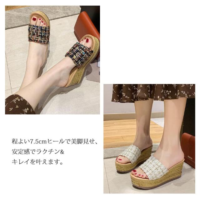 ツイード ミュール サンダル レディース 歩きやすい 旅行 厚底 ウェッジソール リラックスサンダル 疲れない おしゃれ サボサンダル コンフォートサンダル 美脚 脚長 22.0-25.0cm