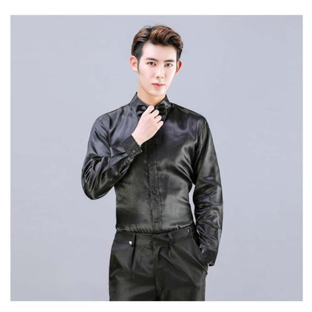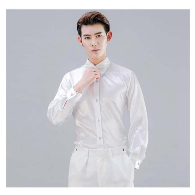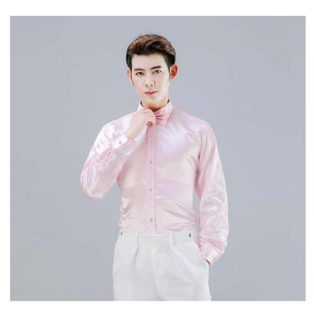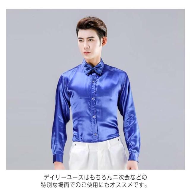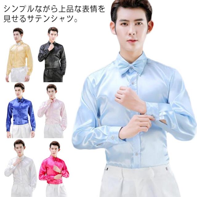 サテンシャツ メンズシャツ ワイシャツ 蝶ネクタイ付き 長袖シャツ スタンドカラー カラバリシャツ ダンス衣装 舞台 ステージ衣装 宴会 忘年会 新年会 余興 コスプレ コスチューム 司会者 礼服