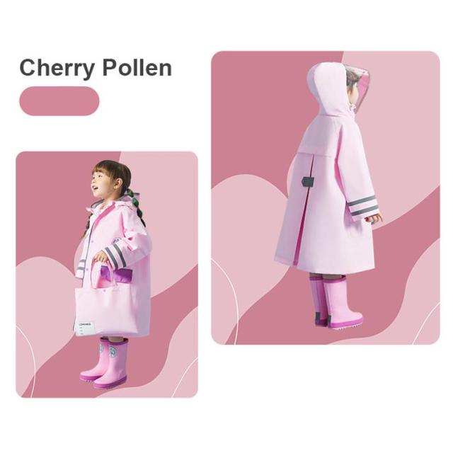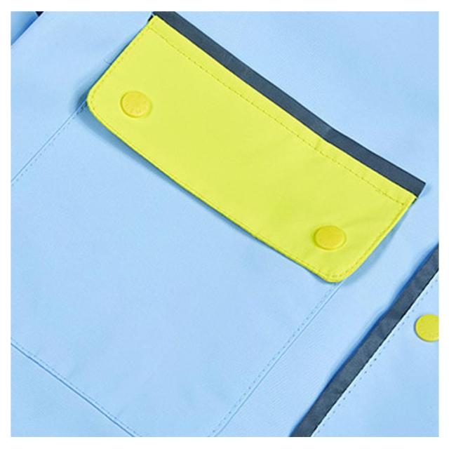 | 【撥水加工でも、やわらか素材でゴワゴワしない】生地部分は汚れや水を弾きやすい「はっ水加工」が施されており、柔らかいポリエステルを使用しておりますので薄すぎず、分厚すぎず、ゴワゴワせずに動きやすいのが特長です。 【ランドセル対応、もちろんリュックもOK】ランドセルを背負ったままレインコートを着られる「ランドセルタック」仕様なので、普段使いはスナップボタンをつけたまま、ランドセルやリュックを背負う場合はスナップボタンを外してとめておけばゆったりと着られます。 【雨の日の「困った」を解消、細部にもこだわりを】フード部分で視界を遮らないように、顔周りは透明になっています。そして首元にはフードが風で飛びづらいようにゴム仕様のボタン付になっています。反射テープつき。薄暗い雨の日でも、車のライトに反射して光るので安心。 【携帯に便利な収納袋付き】 収納や持ち運びに便利な同じデザインバッグ付き。軽量でコンパクトに折り畳めます。 持ち運びも楽々♪ | |