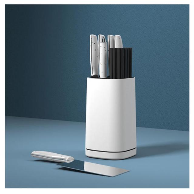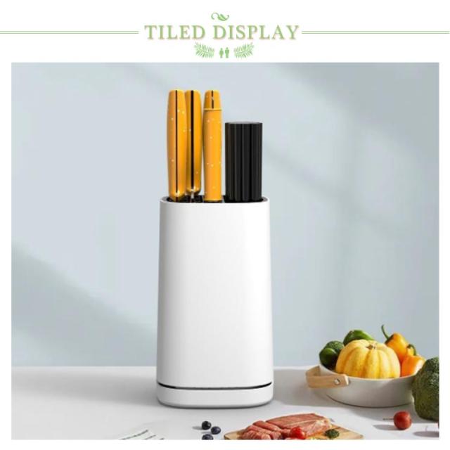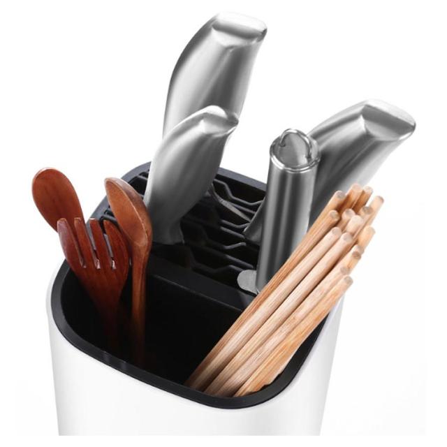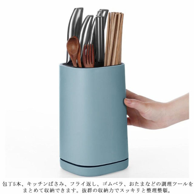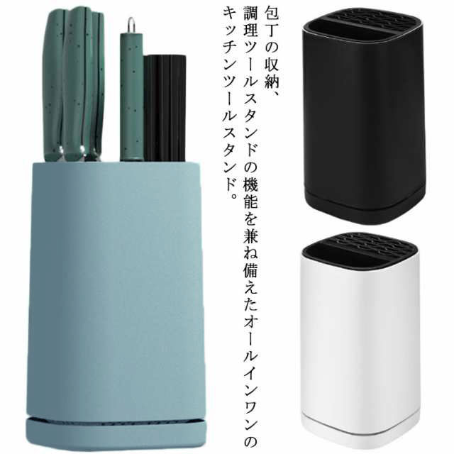 | 包丁の収納、調理ツールスタンドの機能を兼ね備えたオールインワンのキッチンツールスタンド。 横幅13?、奥行13?のコンパクト設計でありながら収納力抜群のデザイン、スクエア型を採用。 包丁5本、キッチンばさみ、フライ返し、ゴムベラ、おたまなどの調理ツールをまとめて収納できます。抜群の収納力でスッキリと整理整頓。 全面PP採用、汚れや水に強い耐久性でキッチン用品に最適。普段のお手入れは汚れをふき取る程度でOK。 一番下に水切り用の受け皿があって、水を受け止めてくれるので安心です。 | |