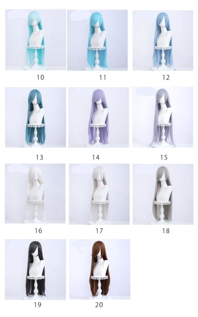 | 全20色!コスプレ用カラーウィッグ 人毛に近い耐熱ファイバーを使用!コテやアイロンを使ってのアレンジも可能です。 初心者さんも着けやすい髪型で、ファッションやコスプレを楽しみたい方におすすめのフルウィッグです。 | |