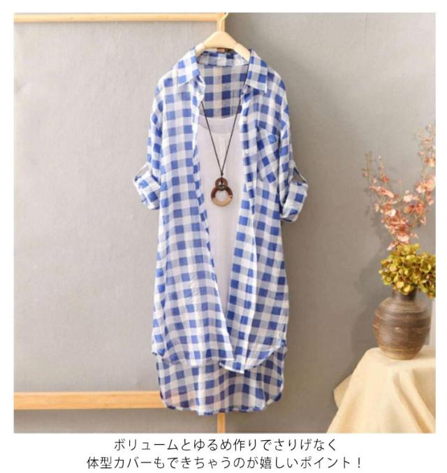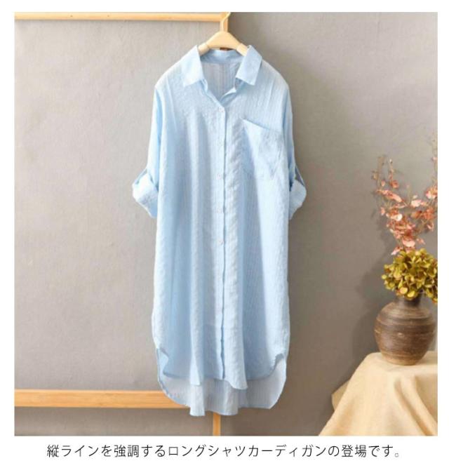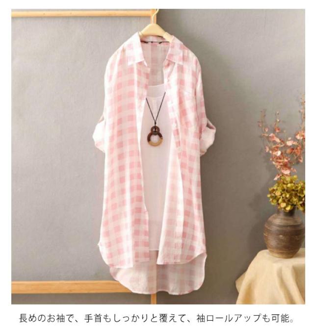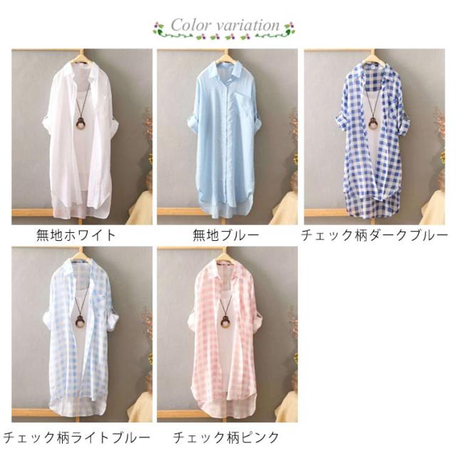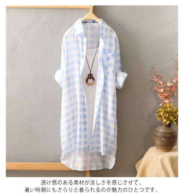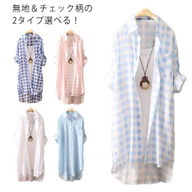 ロングカーディガン サマーカーディガン ロングシャツ 送料無料 シャツカーディガン ロング ガウン カーディガン 無地 チェック柄 長袖 ロールアップ 旅行 レイヤード カジュアル 羽織り アウター 春夏 日焼け防止 おしゃれ