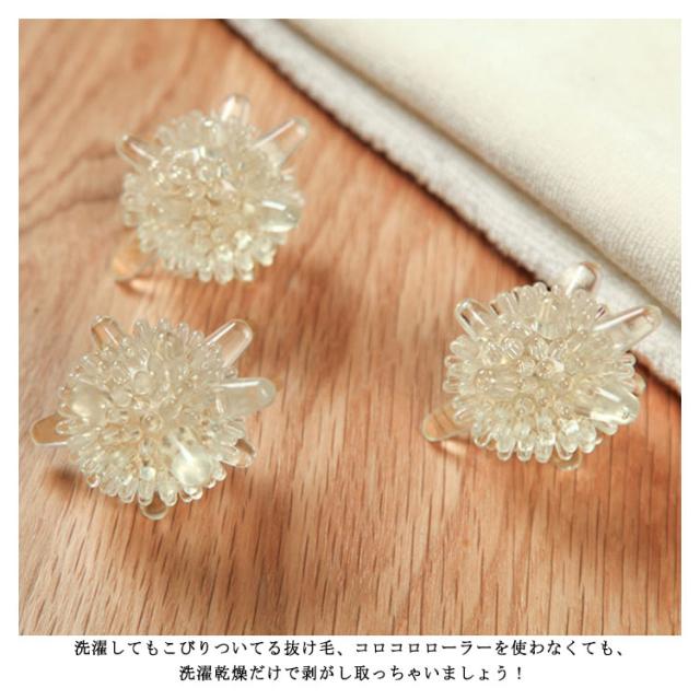 | 洗濯機や乾燥機に入れ、衣服からペットの毛をきれいに取り除くグッズです。 洗濯してもこびりついてる抜け毛、コロコロローラーを使わなくても、洗濯乾燥だけで剥がし取っちゃいましょう!繰り返し、何百回も使えます! 衣服、寝具、ジャケット、ドレス、毛布、シーツなどについた抜け毛、糸くず、ふけ、その他の破片を洗濯と同時に取り除きます。 毎日のお洗濯のタイミングで、服と一緒にゴムを入れて洗濯機を回します。 すると、服についた毛が剥がされ、洗濯機のホコリネットにごっそり溜まる仕組みです。 洗濯機だけでなく、乾燥機でも活躍します! 洗濯槽内で浮遊するペットの細い毛や糸くずをキャッチして離しません。 衣類やタオルなどに付着した抜け毛取りに使えます | |