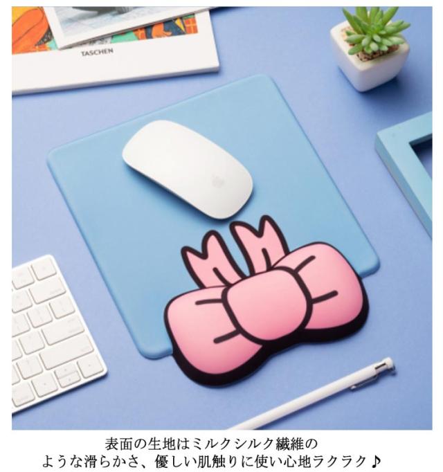| 快適にマウス操作ができるリボンマウスパッド リボン部分は低反発のクッション、固すぎず柔らかすぎず手首にしっかりフィット。 長時間の使用によりる手首の圧迫、疲労、痛みを緩和、腱鞘炎予防にも◎ 表面の生地はミルクシルク繊維のような滑らかさ、優しい肌触りに使い心地ラクラク♪ 裏面は滑り止め加工済みの素材を使用!ずれにくくて快適。 かわいいアリボンデザインで、デスクをかわいく彩ります。 | |