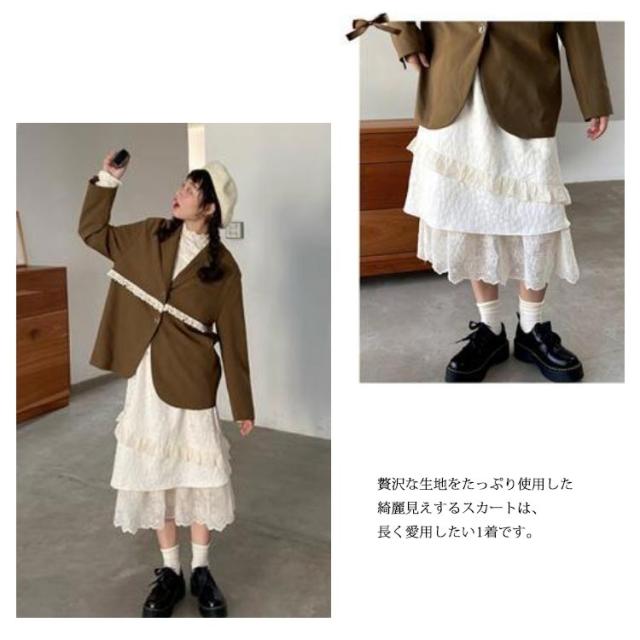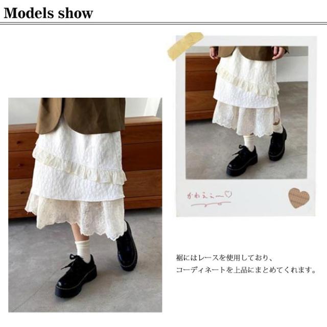 | 3重構造で、一枚で着ても◎、ドレスやスカートのインナーに使える便利なレーススカート。 裾にはレースを使用しており、コーディネートを上品にまとめてくれます。 さりげないアレンジで、周りとかぶらないコーデが出来るおススメアイテムです。 ウエストはゴム仕様なので着用しやすいのもうれしいポイントです。 贅沢な生地をたっぷり使用した綺麗見えするスカートは、長く愛用したい1着です。 | |