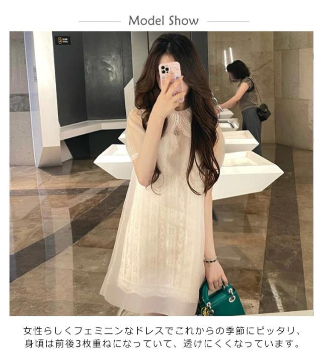 ワンピース ミドル丈 シースルー 半袖 パフスリーブ 無地 上品 おしゃれ レディース 春 夏 ぽわん袖 ワンピース パフスリーブ シフォン S M L XL