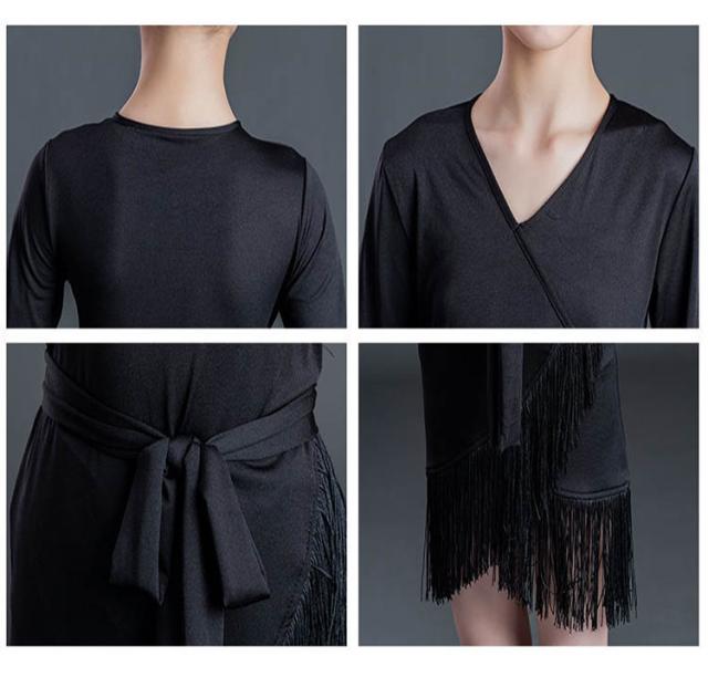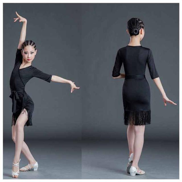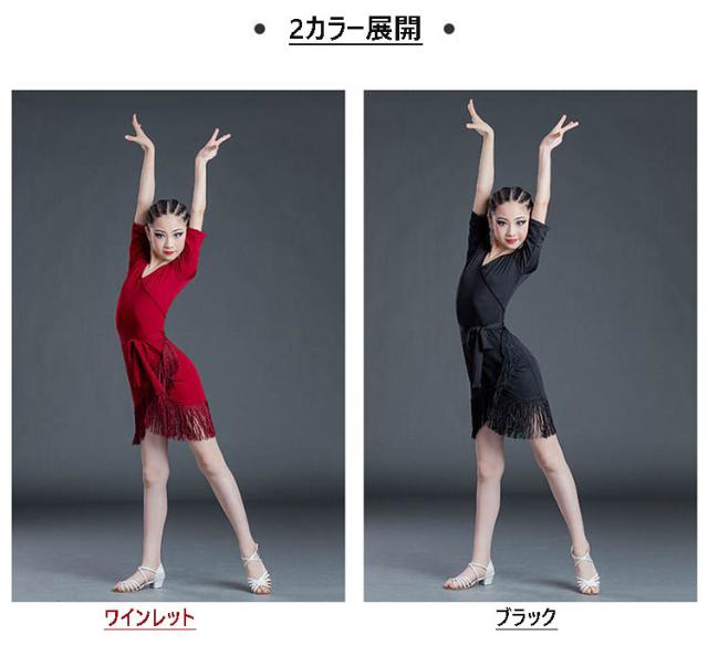 ダンス衣装 キッズ ラテンダンス ラテンダンスウェア 七分袖 フリンジ フリル ワンピース 社交ダンス衣装 ステッジ衣装 舞台 発表会 演奏会 ダンス衣装