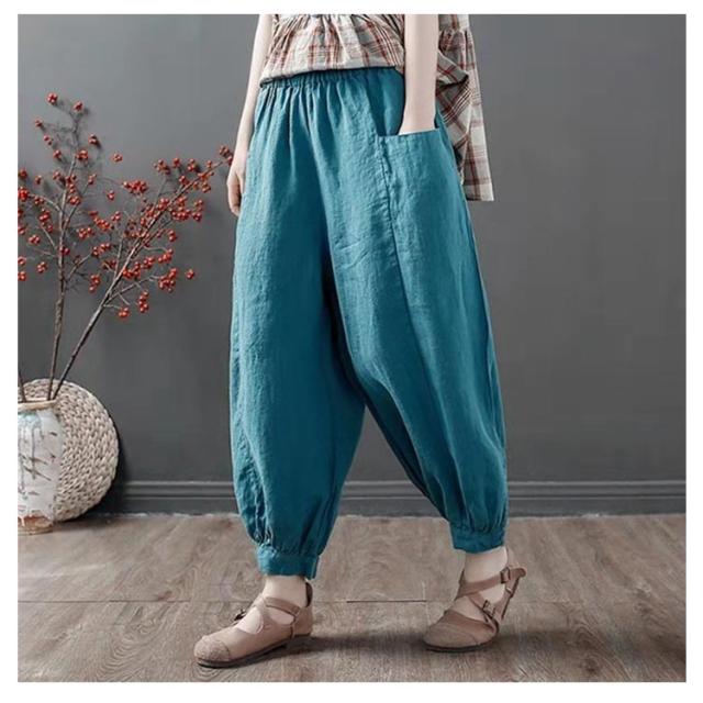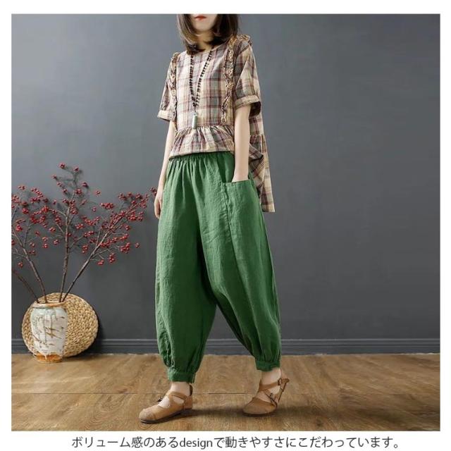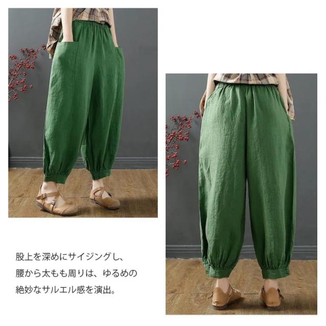 サルエルパンツ レディース アラジンパンツ ワイドパンツ 送料無料 綿麻 パンツ サルエル パンツ 薄手 リネンパンツ バルーンパンツ カジュアル ウエストゴム 春 夏 秋 ボトムス 大きいサイズ ナチュラル 無地