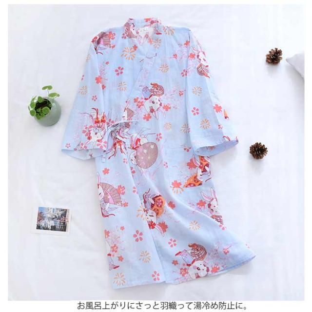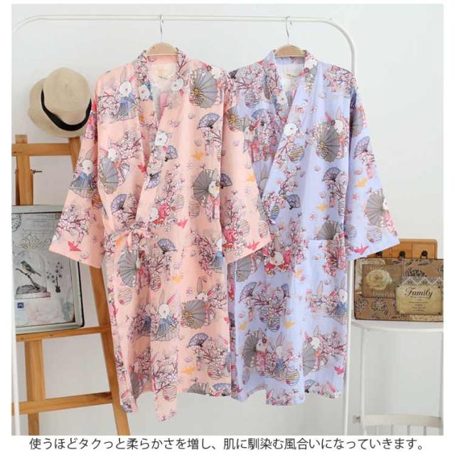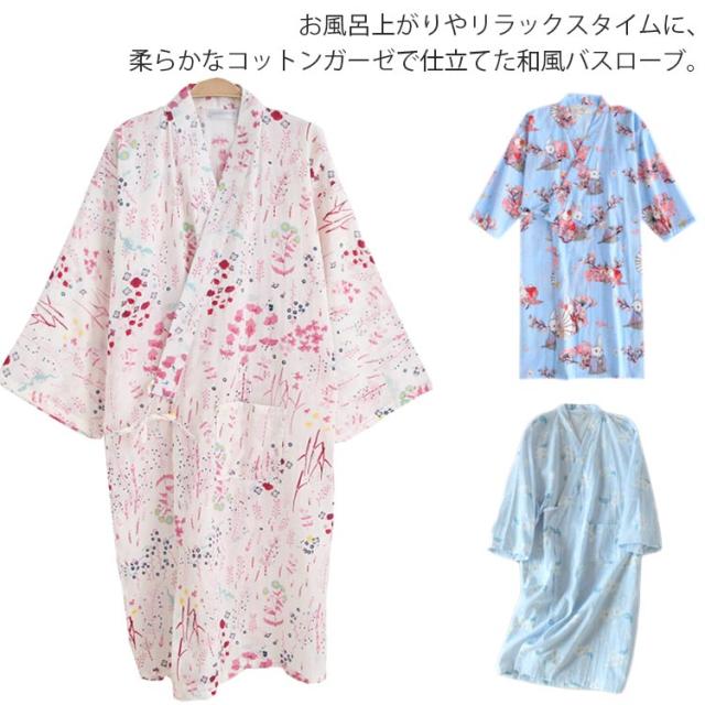 和柄 浴衣 お風呂上り バスローブ ガーゼバスローブ 送料無料 ガウン ルームウェア 軽量 吸水 速乾 ギフト ガーゼ 寝巻き ワンピース 和風 レディース メンズ 5分袖 薄手 春夏