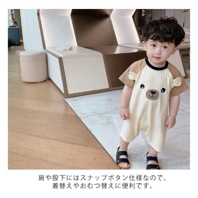 ベビー ロンパース 半袖 カバーオール 綿混 ベビー服 Tシャツ つなぎ 赤ちゃん 新生児 子供服 男の子 女の子 子ども服 こども服 肌着 マニュアル プリント 配色切替 かわいい ユニセックス ルームウェア 部屋着 夏 夏服 通園 出産祝い ギフト 送料無料