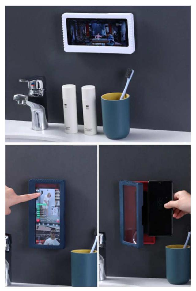 お風呂防水スマホケース スマホ 防水ケース 風呂 スマホカバー スマホスタンド スマホホルダー お風呂 壁掛け 防水 防塵 防油 タッチパネル操作可能 バスルーム収納 キッチン 玄関 浴室 シャワー時 送料無料