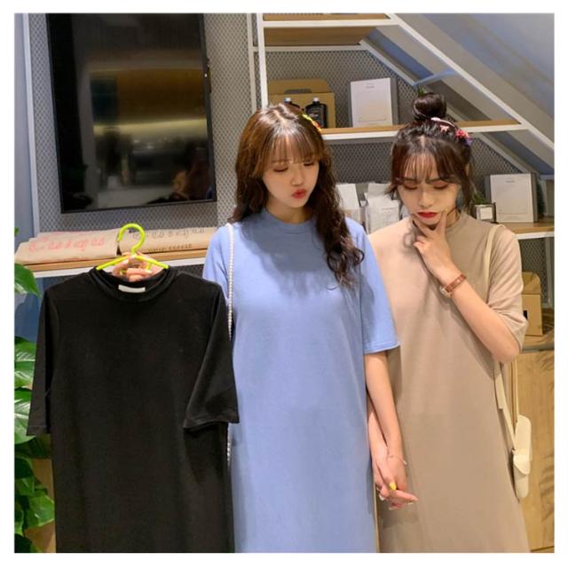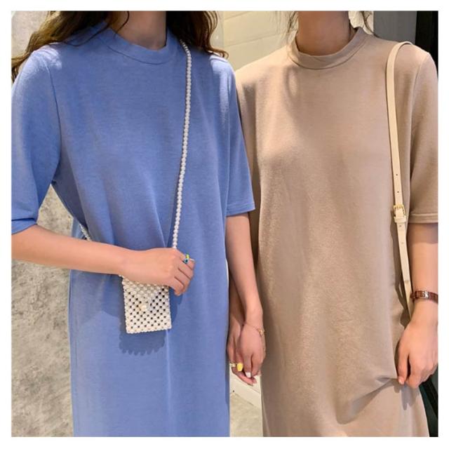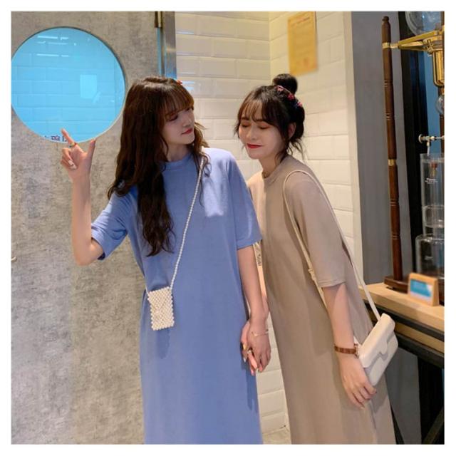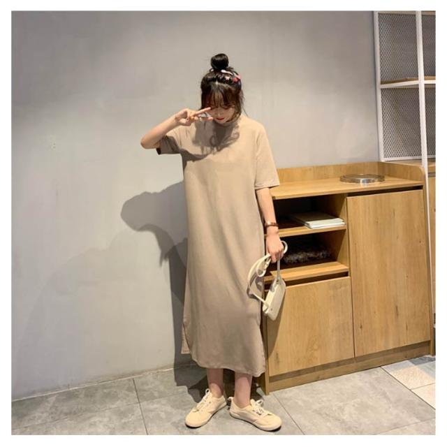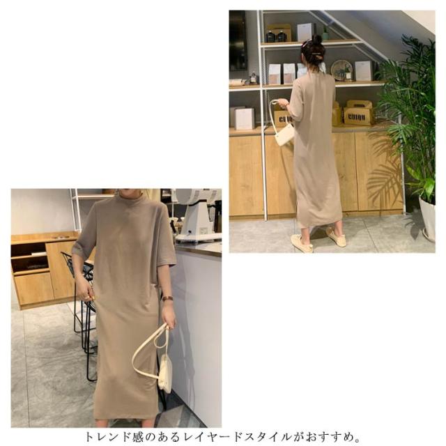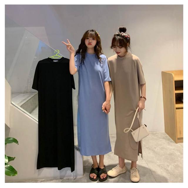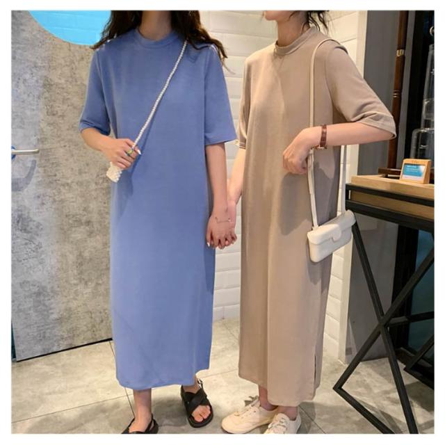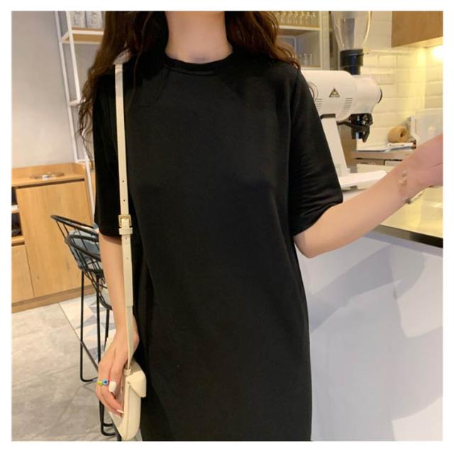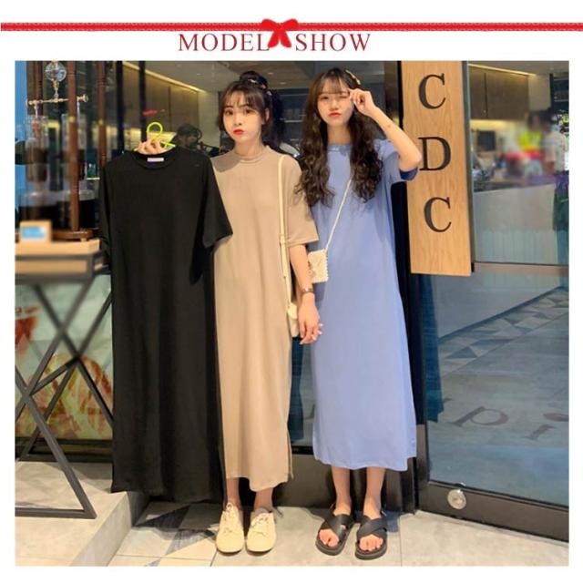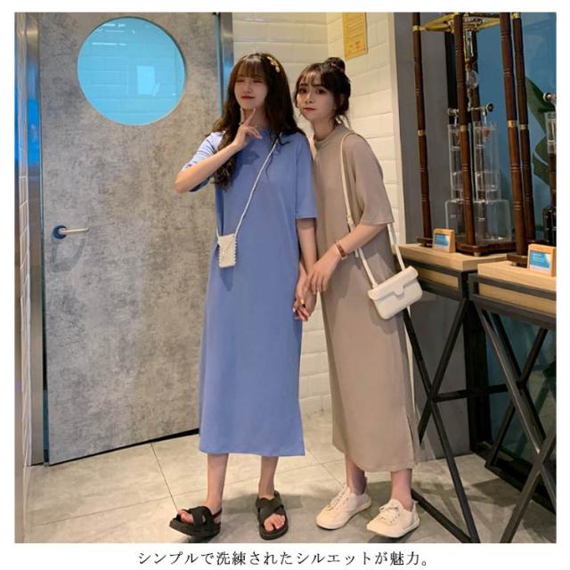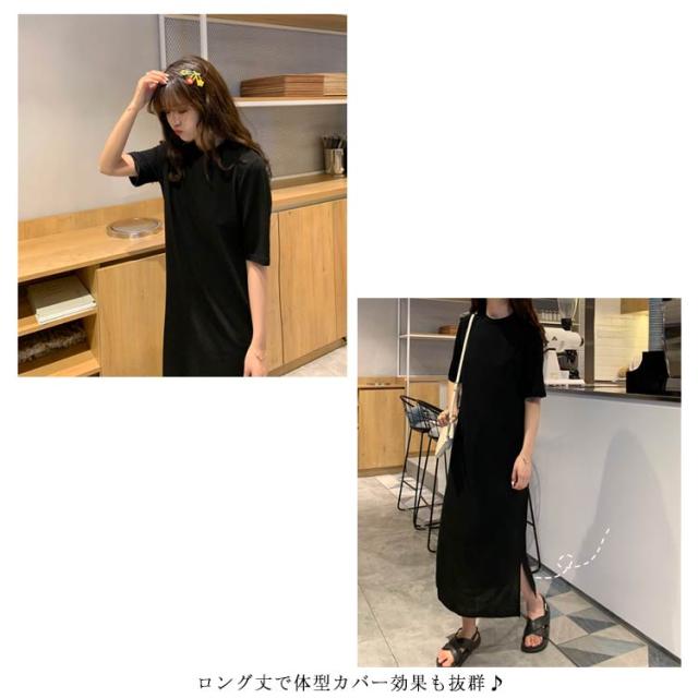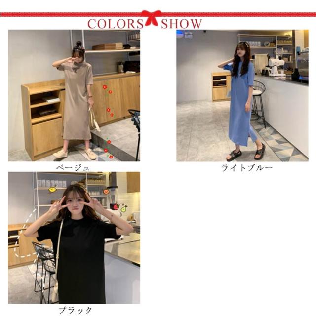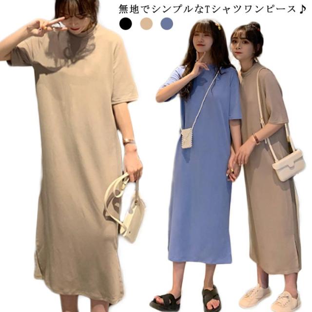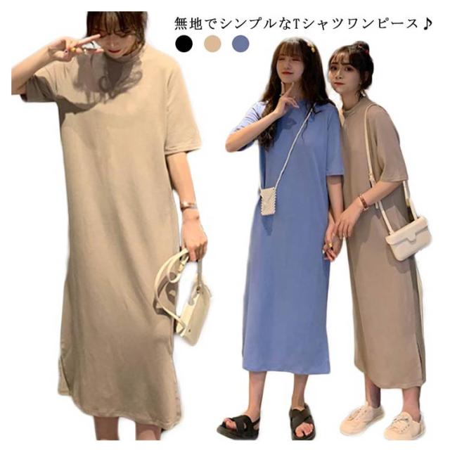 送料無料 Tシャツワンピース レディース ロング丈 半袖 五分袖 シンプル ワンピース マキシ丈 Tシャツワンピ ラウンドネック 夏 ルームウェア 無地 ゆったり 体型カバー ビッグT ロング丈 膝丈 チュニック サイドスリット S〜4XL