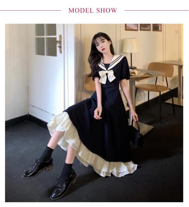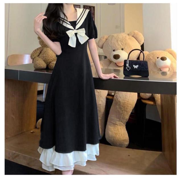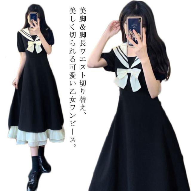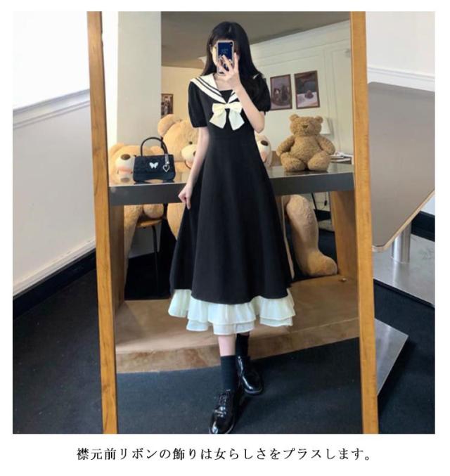 ワンピース 夏 ロングワンピース フレアワンピース マキシ丈ワンピ Aライン ロングワンピ 半袖 ワンピ 体型カバー セーラー襟 jk 森ガール 海軍風 学生 高校生 通学 卒業式 二次会 発表会 演奏会 ゆったり かわいい