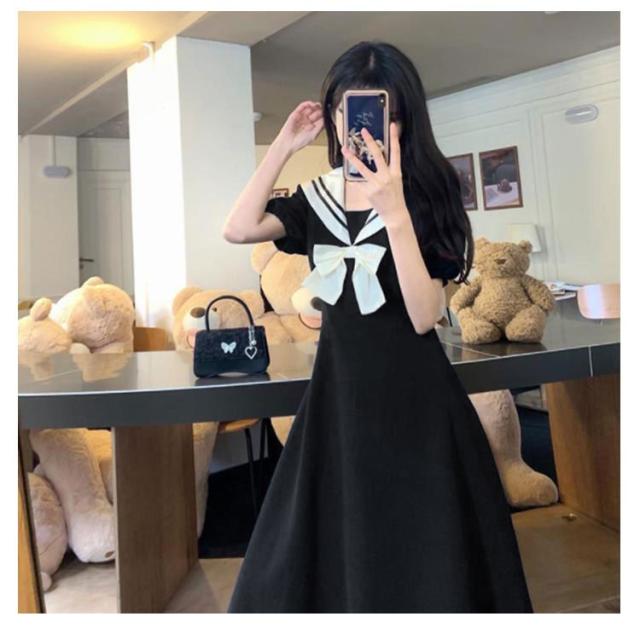 | 美脚&脚長ウエスト切り替え、美しく切られる可愛い乙女ワンピース。 襟元前リボンの飾りは女らしさをプラスします。 セーラー襟だから、後姿がぐっと引き立つ。かわいいスタイルに挑戦できます。 かわいさ溢れるシルエットでガーリー&カジュアルに大変身。 | |