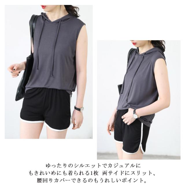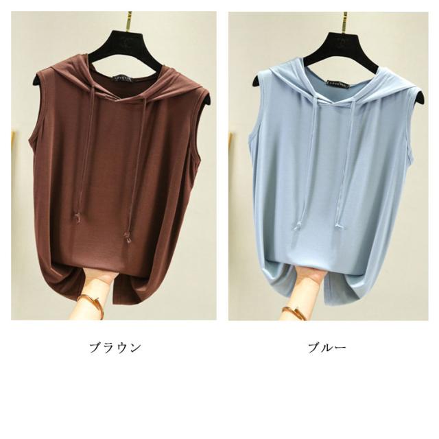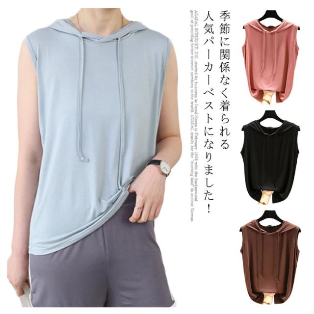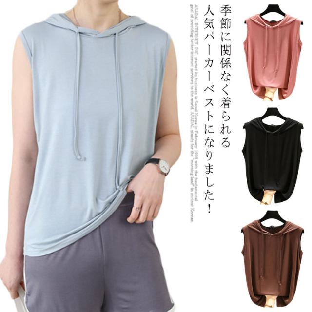 ノースリーブ プルオーバーベスト フード付きベスト 送料無料 シンプル パーカー スウエット フード付き プルオーバー 綿 ゆったり カジュアル 春 秋 トップス